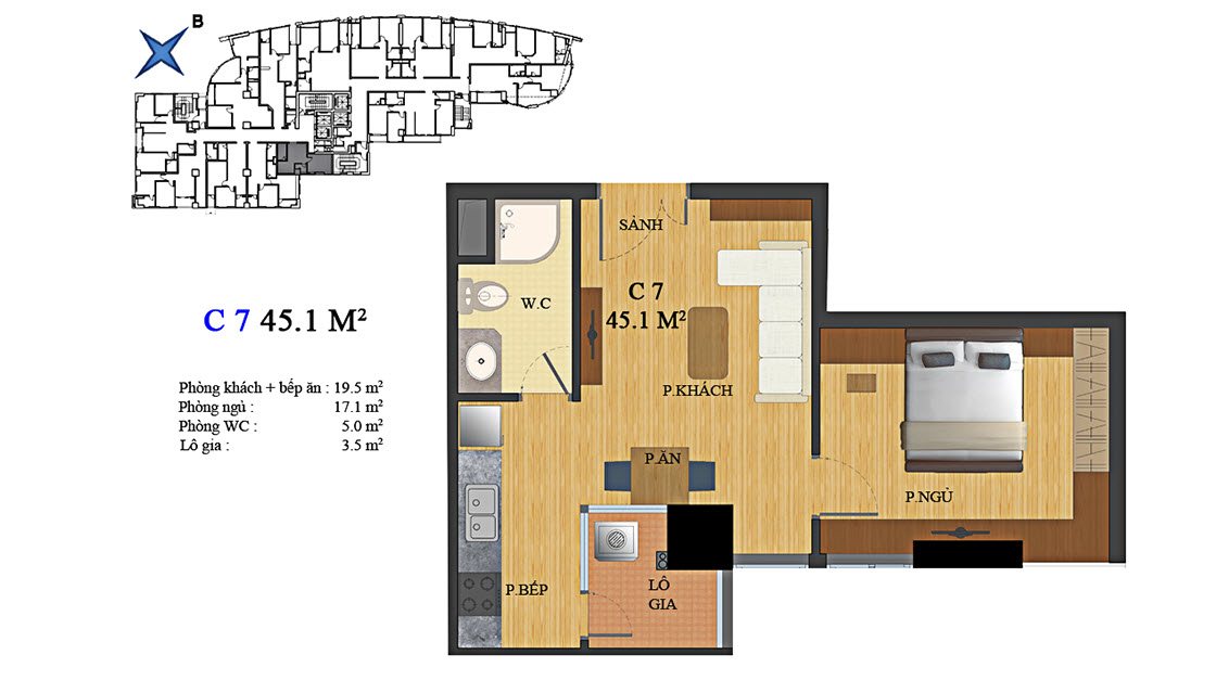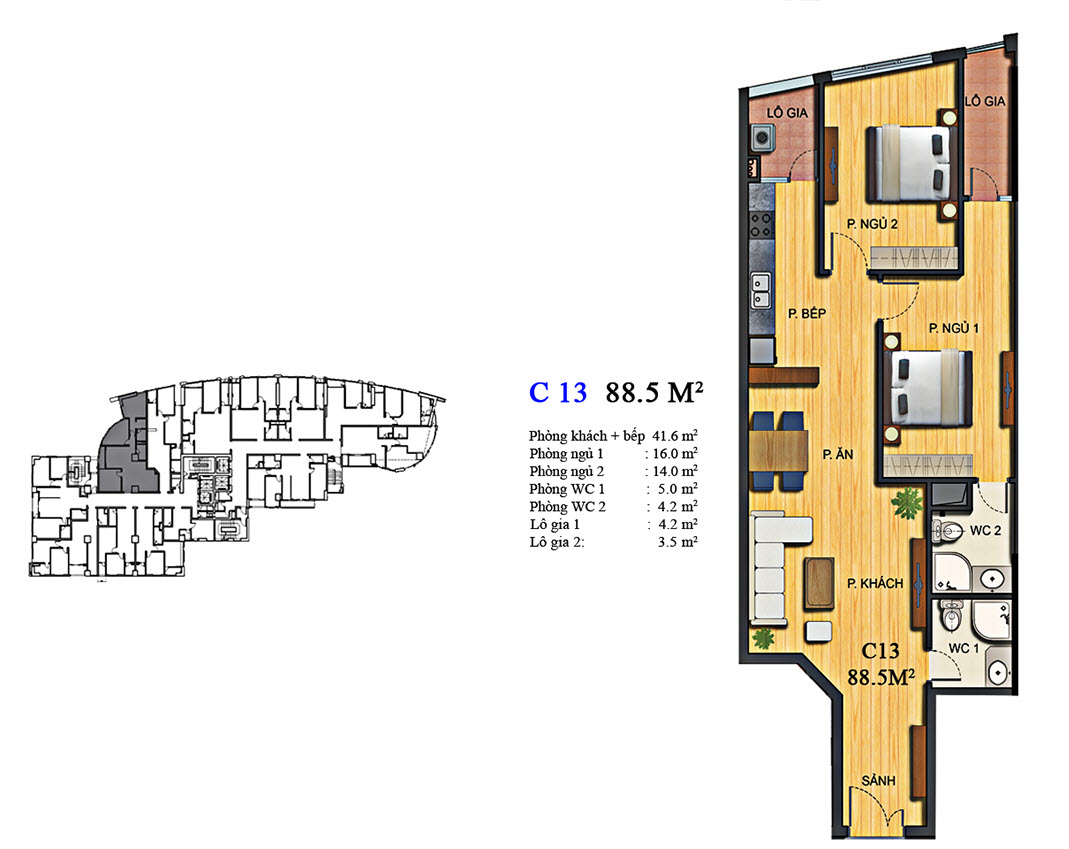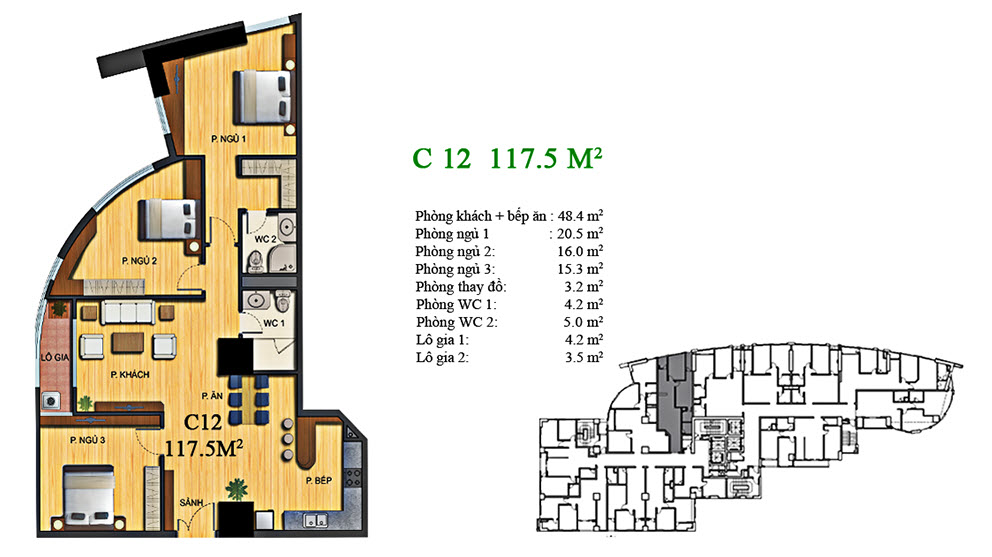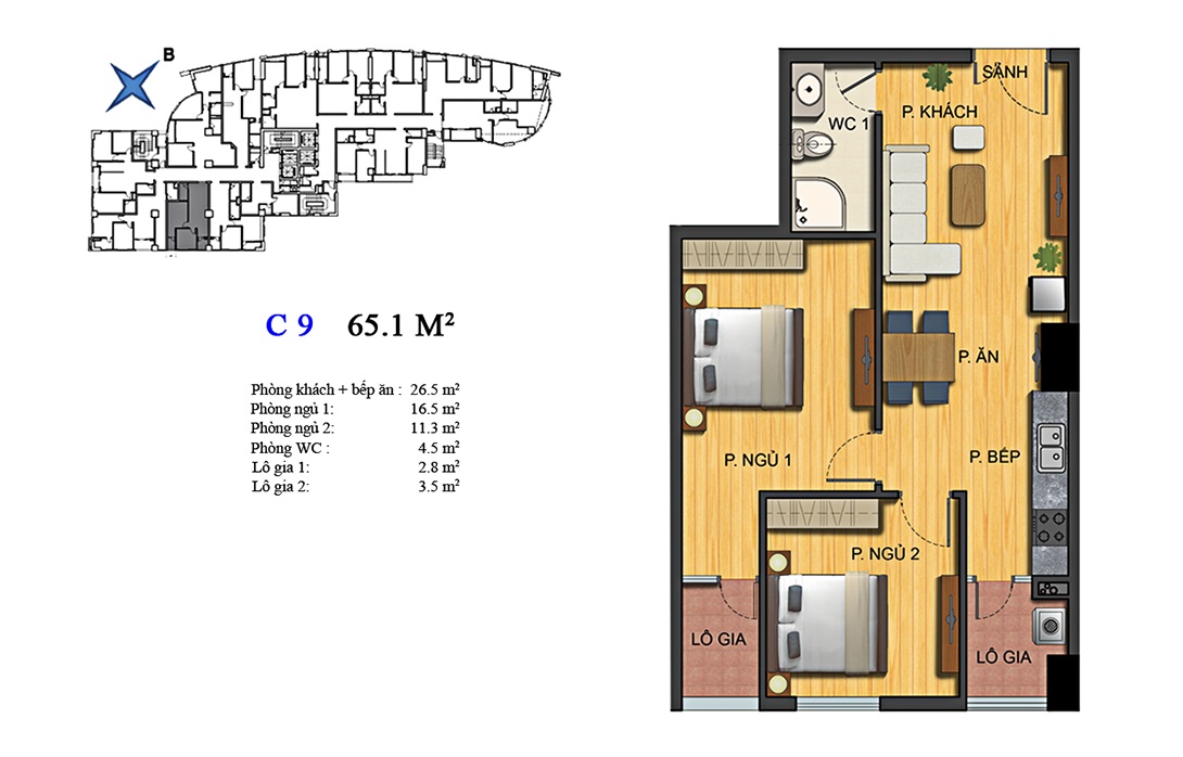 - Diện tích các căn hộ: từ 45m2 đến 128m2