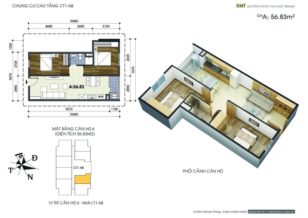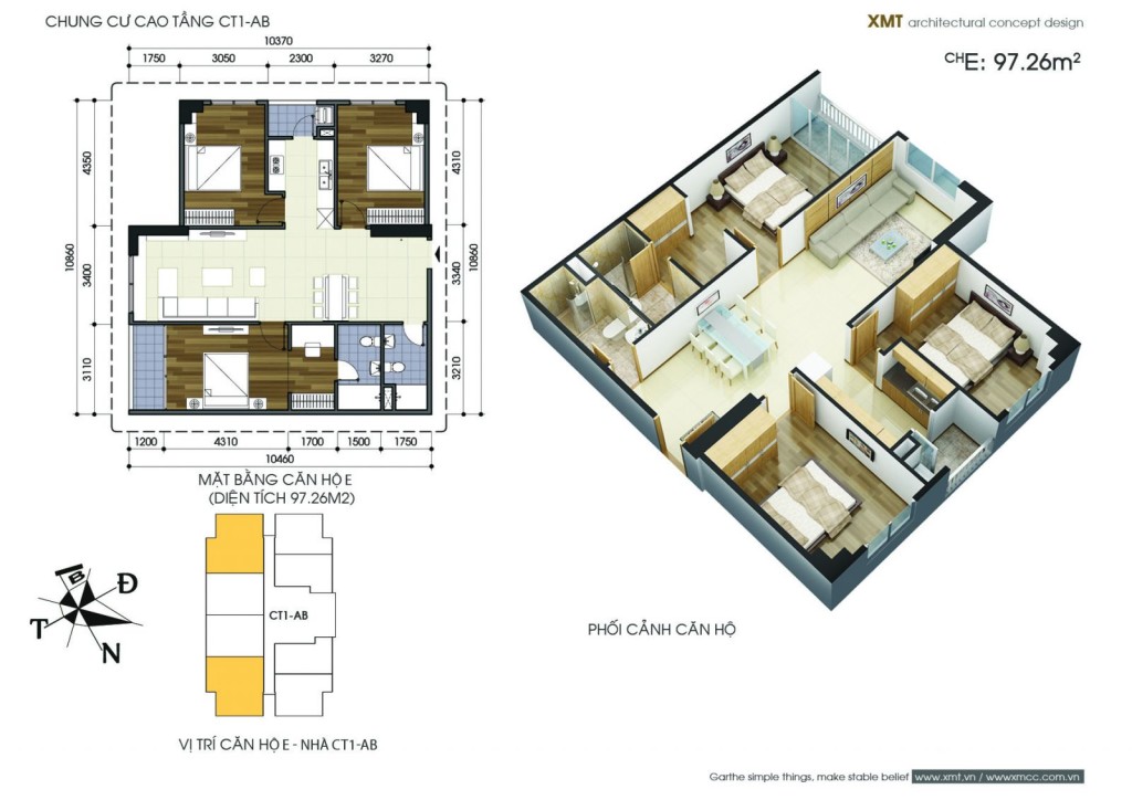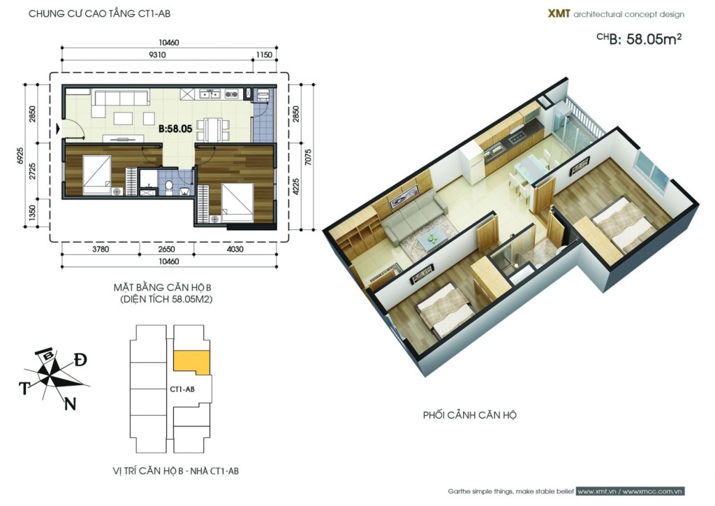- Diện tích căn hộ tại dự án gồm: 56m2; 58m2; 64m2; 71m2 và 97m2.