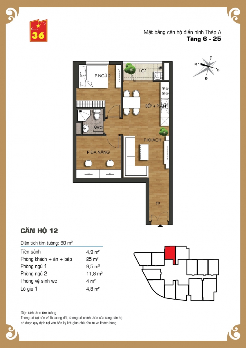 - Tầng 5 - 25: Khu căn hộ chung cư