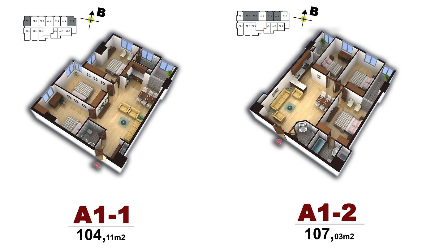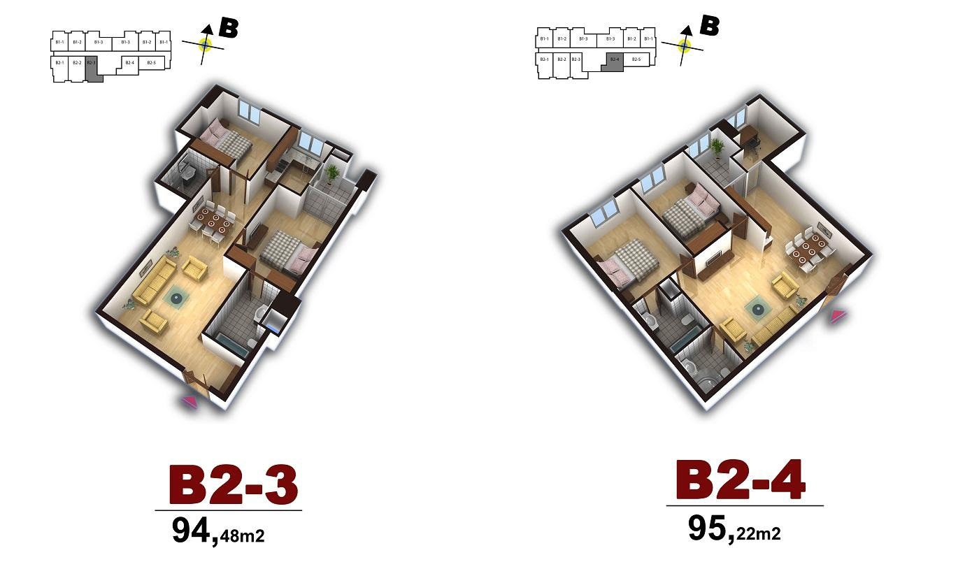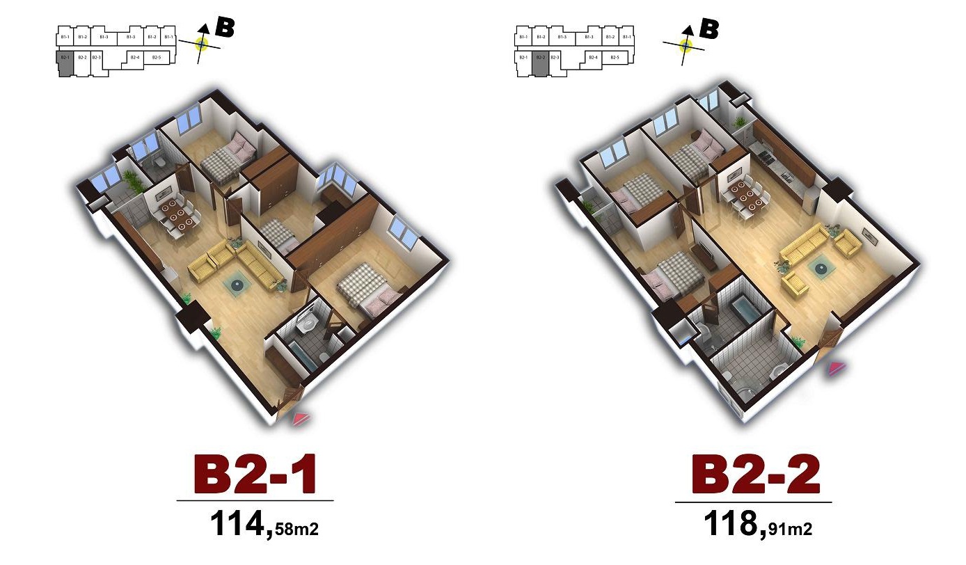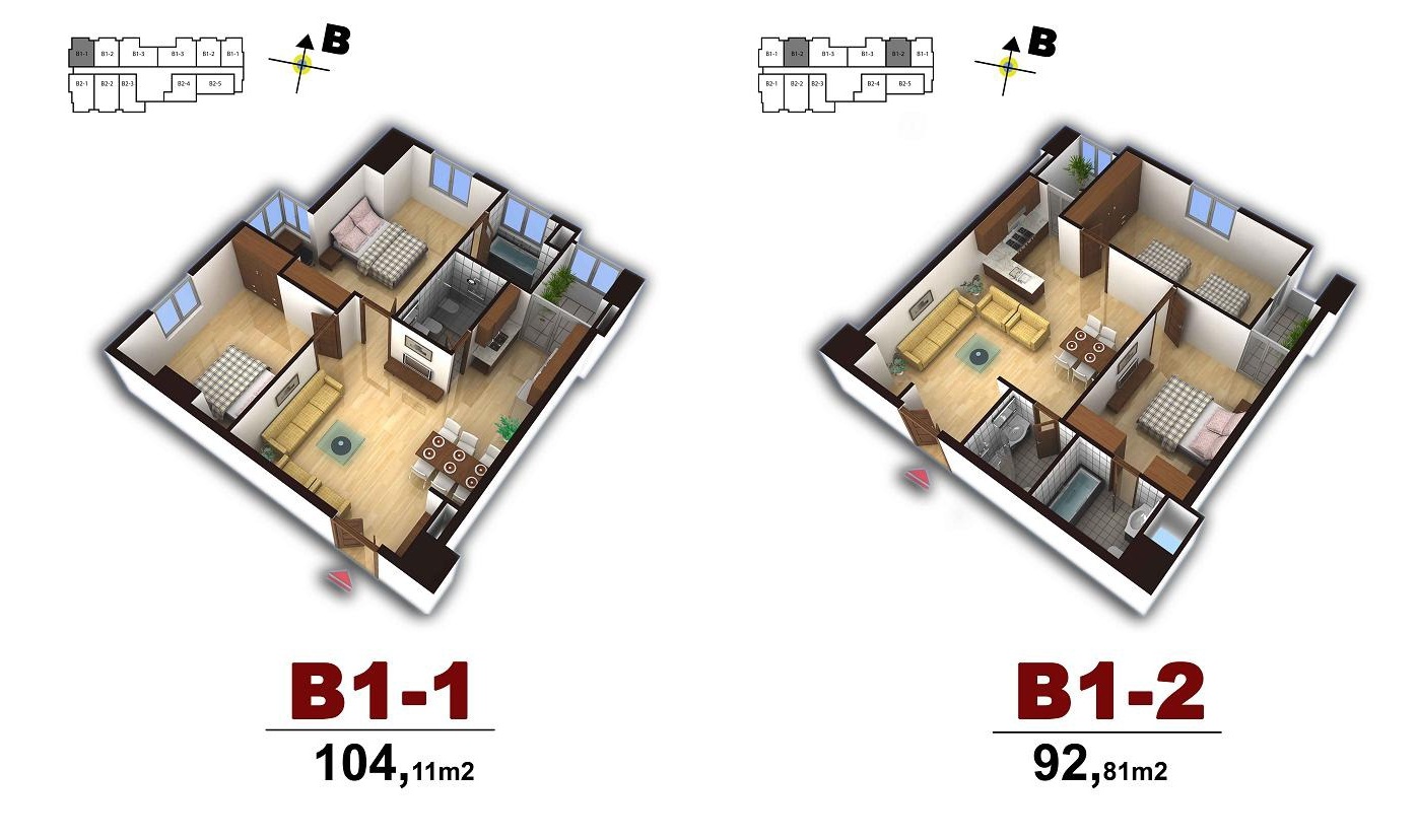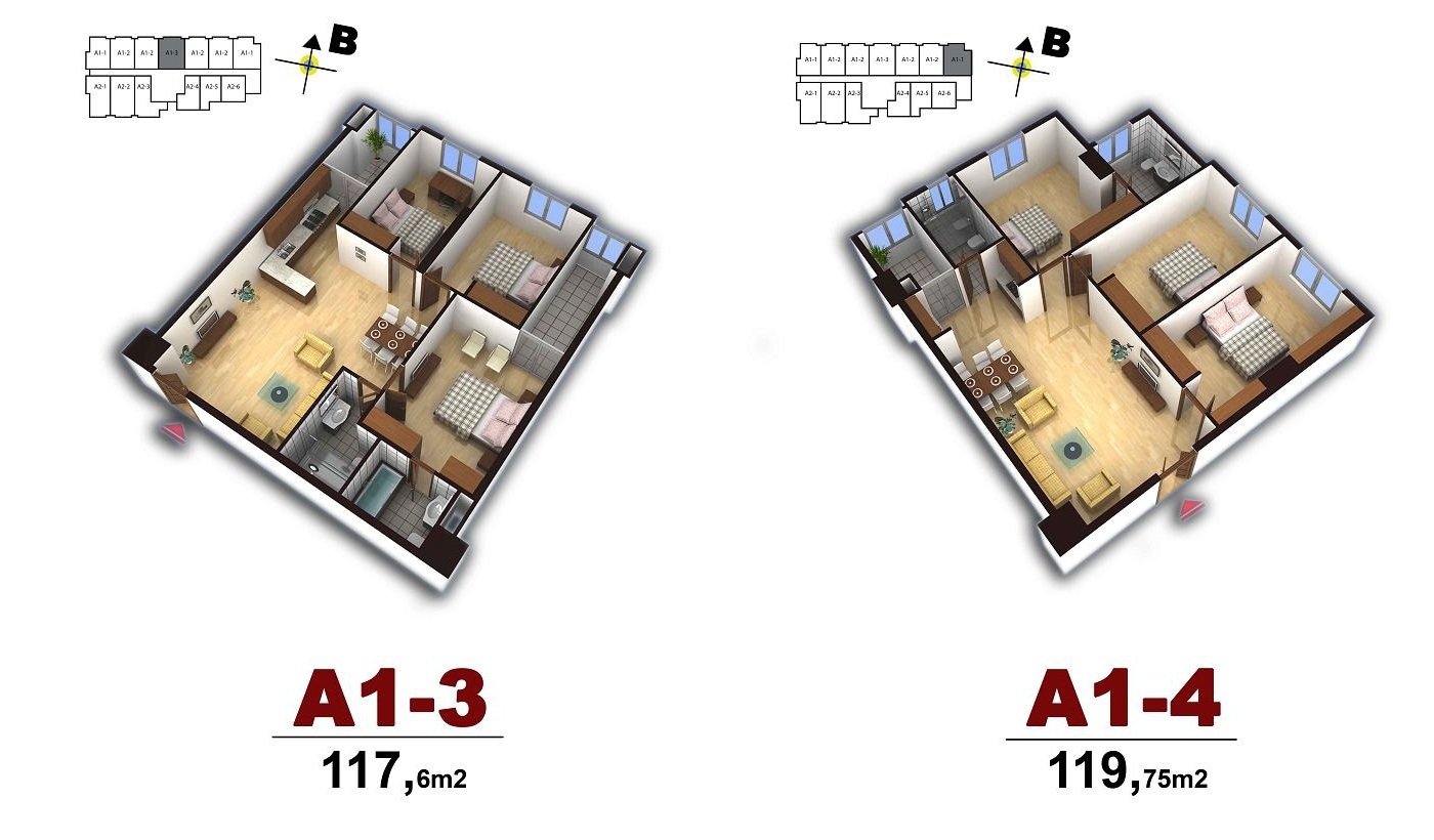 - Diện tích căn hộ: từ 76 m2 đến 120m2