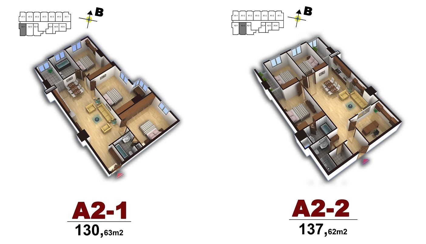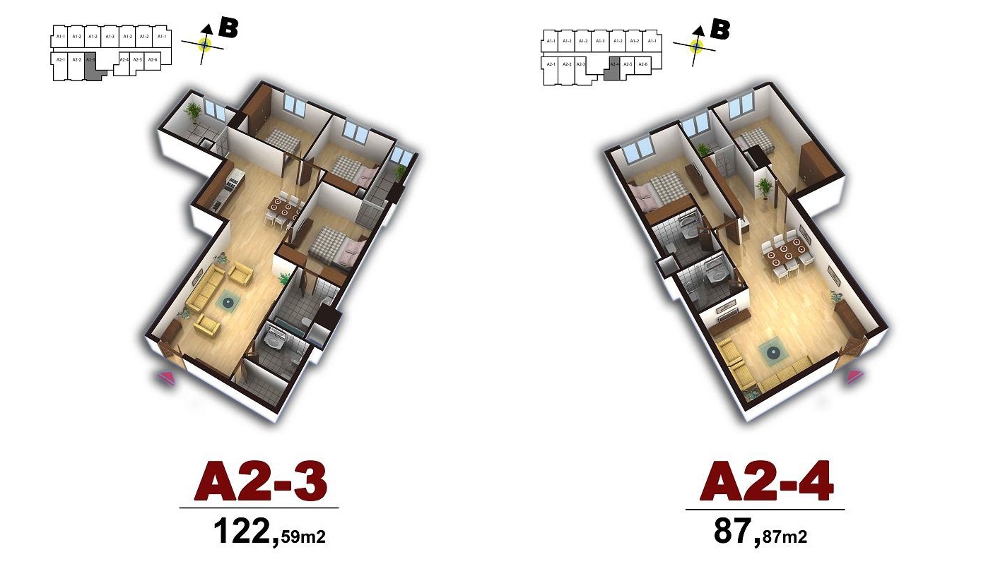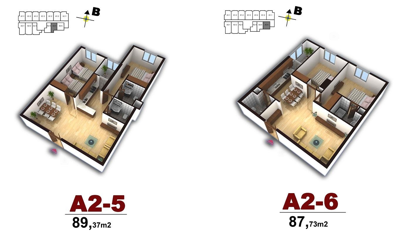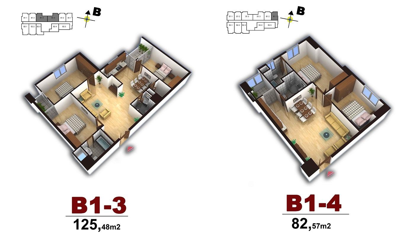 - Diện tích căn hộ: từ 76 m2 đến 120m2