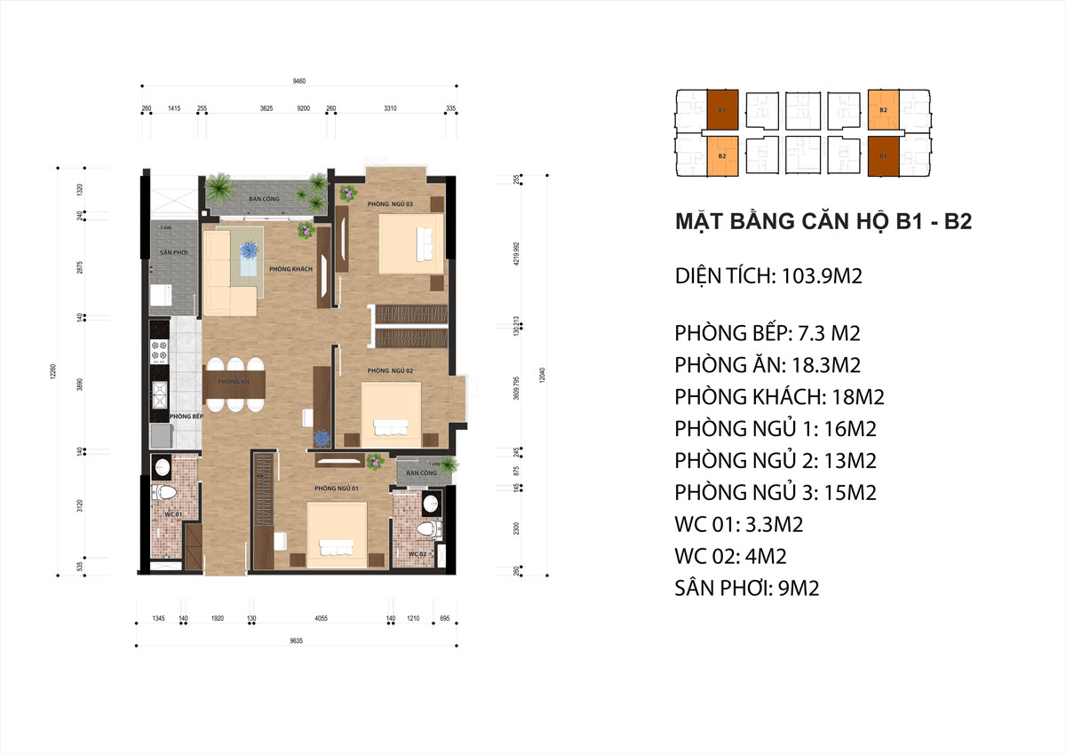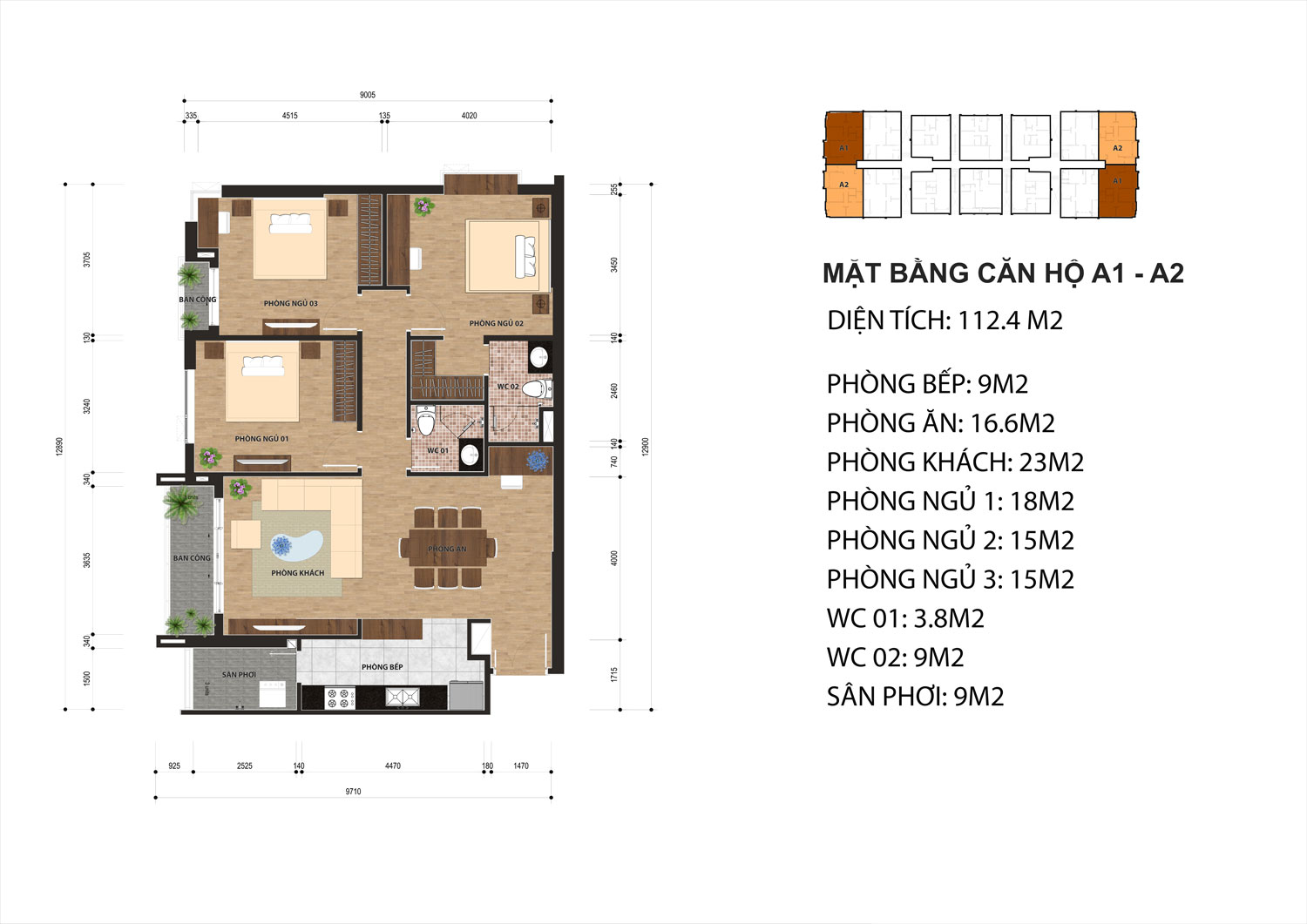 - Cơ cấu căn hộ: 2 – 3 PN,