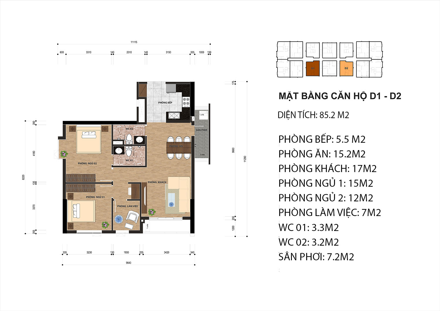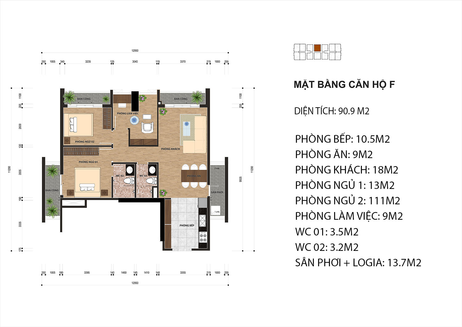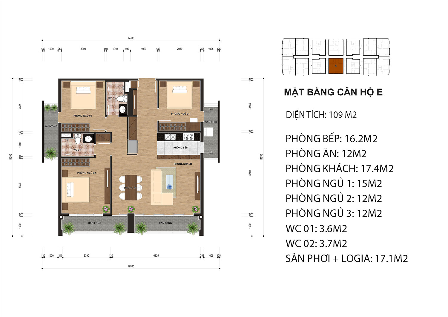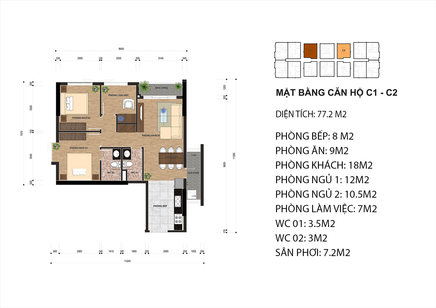 - Mật độ phân bố căn hộ là 14 căn /sàn với các diện tích đa dạng 77 – 109m2, thiết kế 2- 3 phòng ngủ, mang lại cho khách hàng nhiều sự lựa chọn.