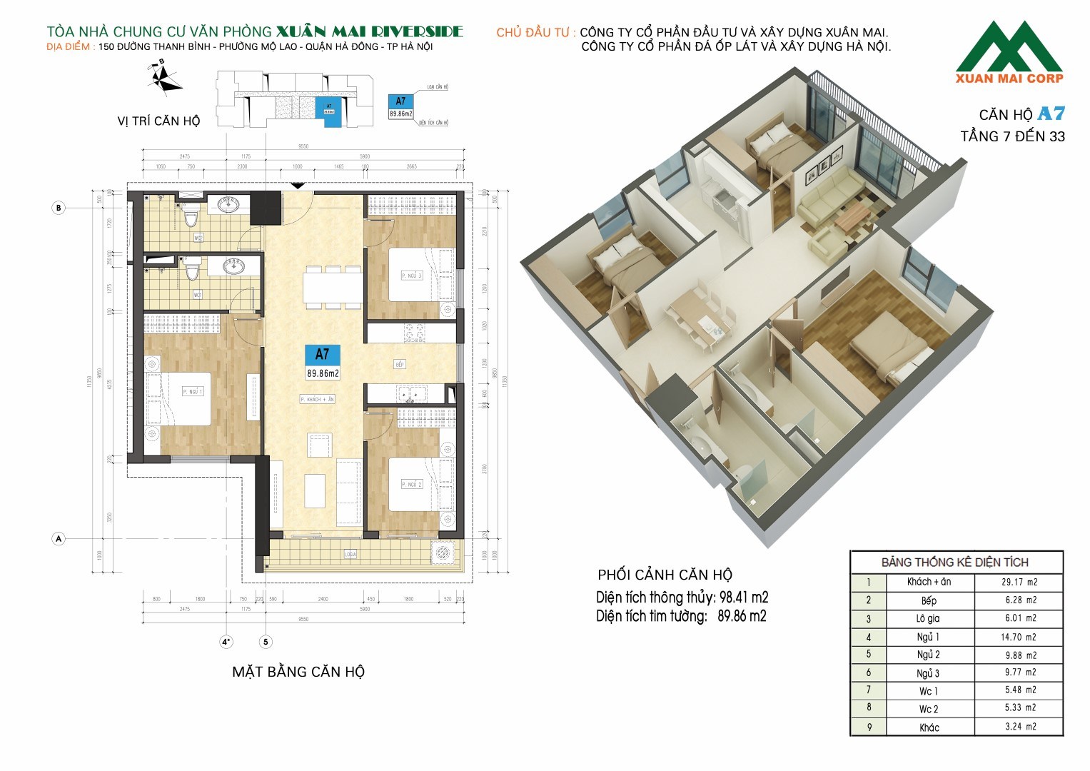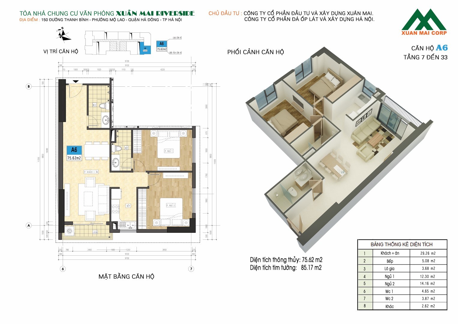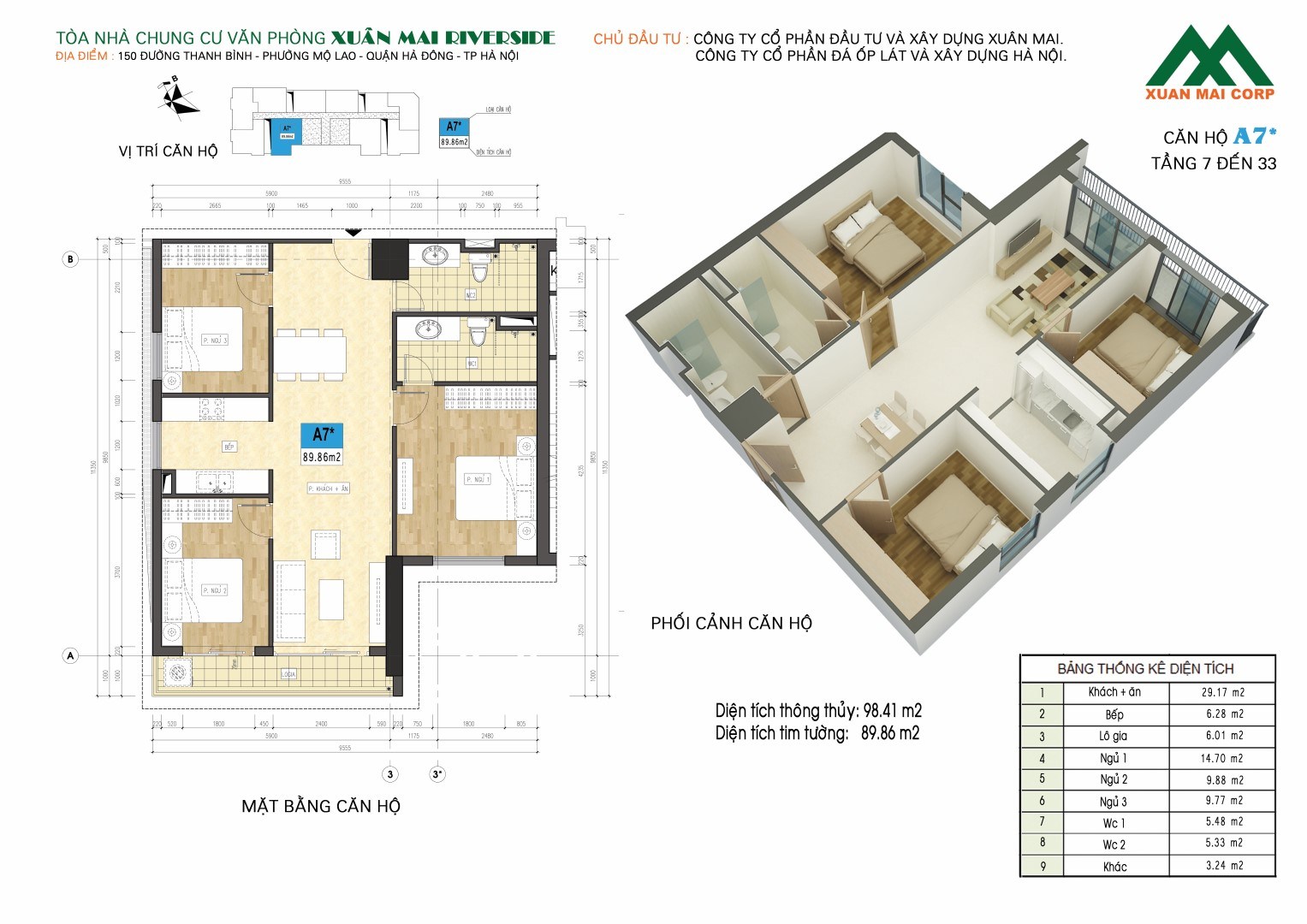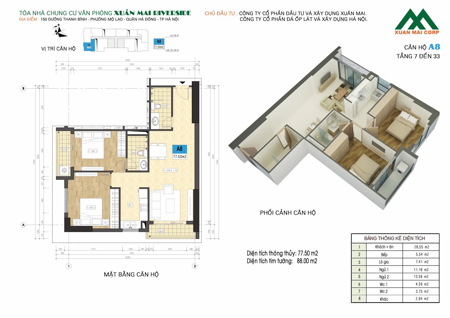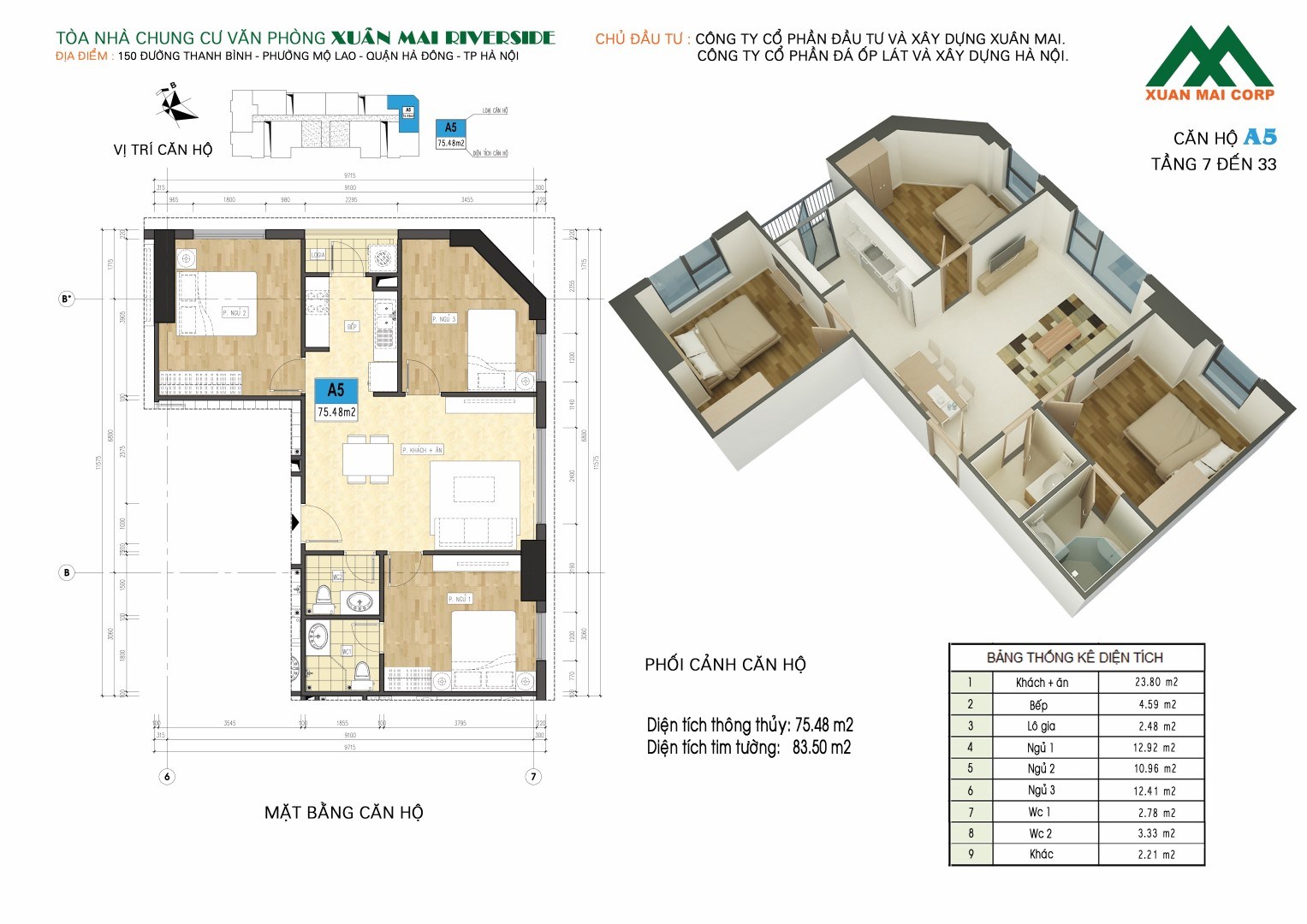 - Chủ đầu tư: Công ty cổ phần đầu tư và xây dựng Xuân Mai - Xuân Mai Corp.