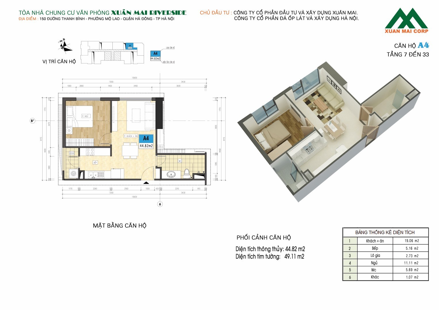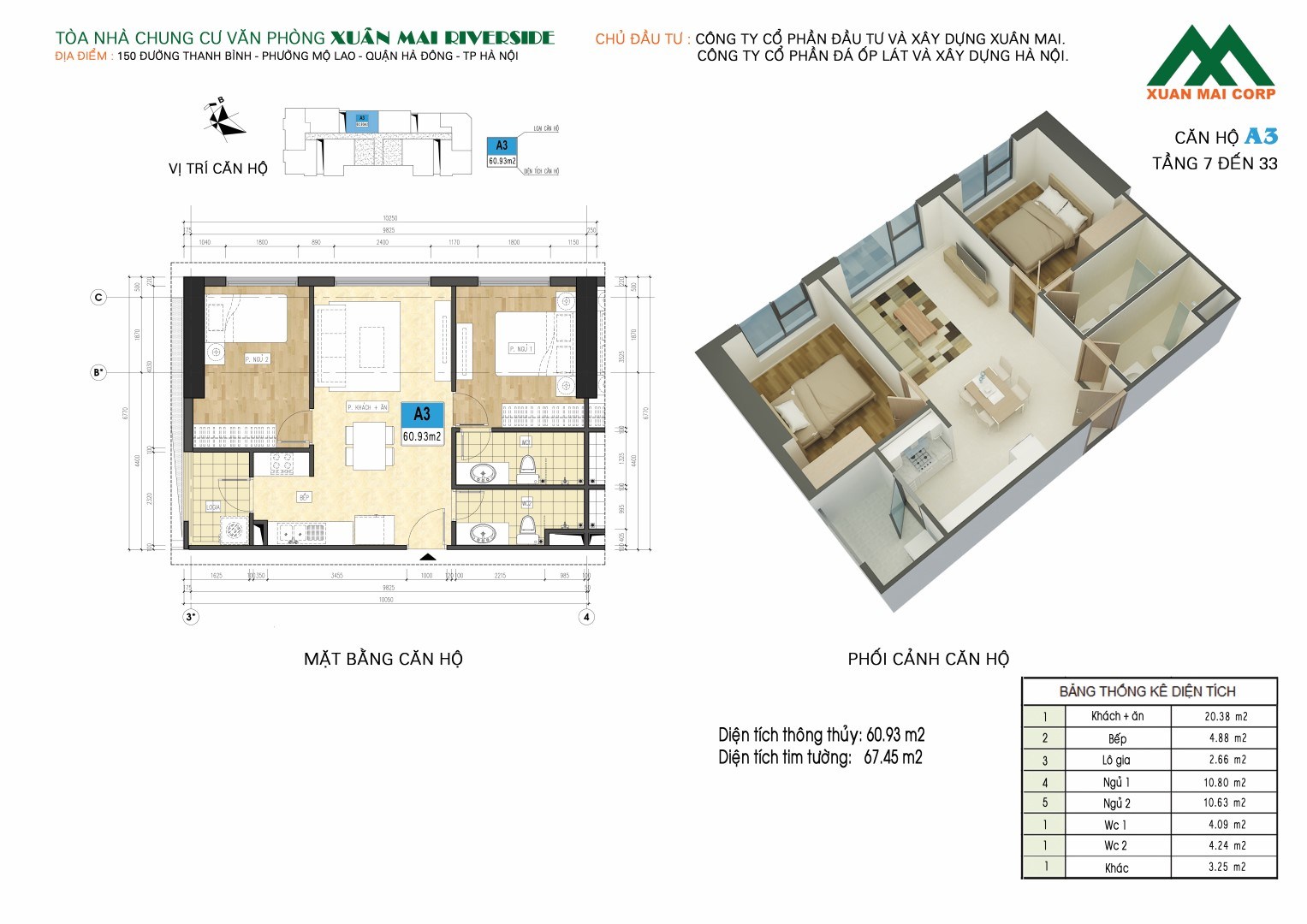 - Tên dự án: Chung cư Xuân Mai Riverside