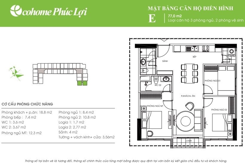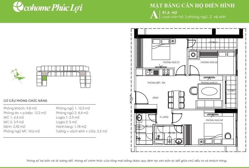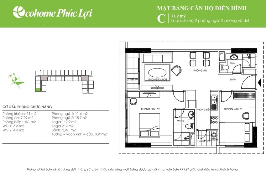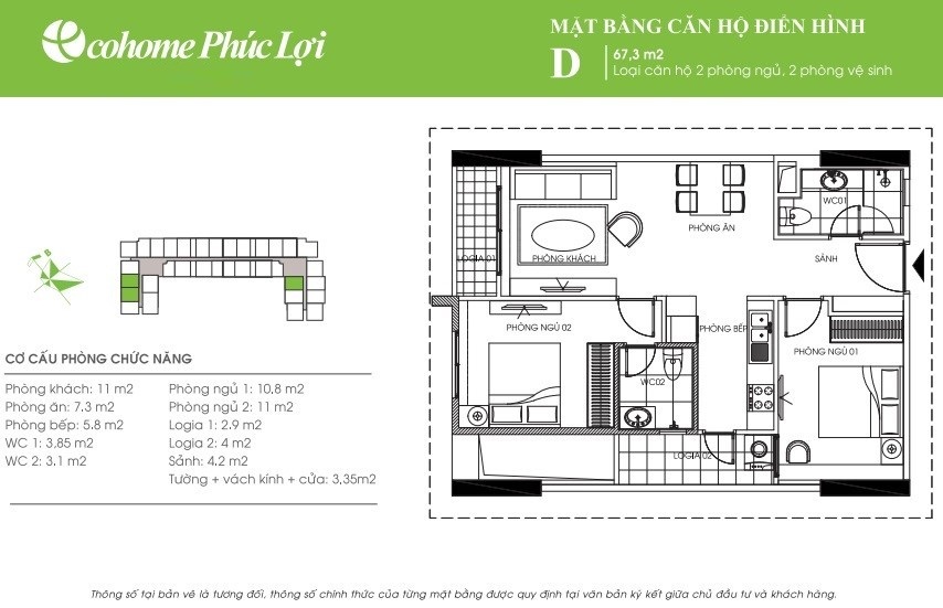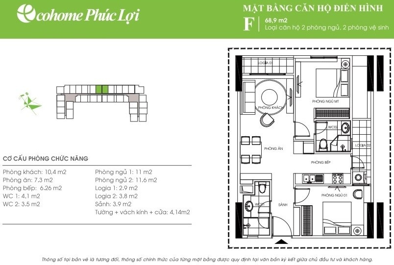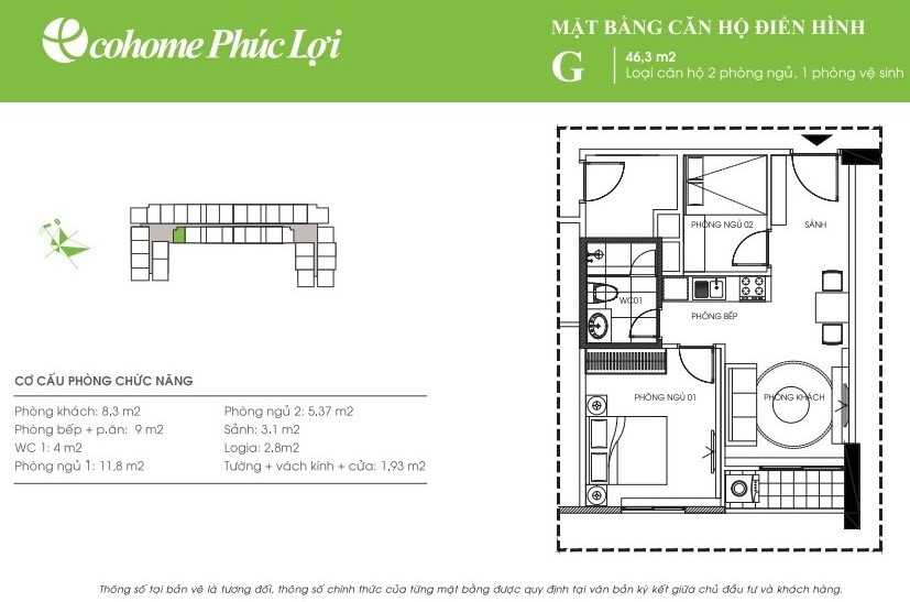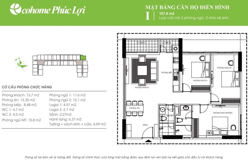 - Cơ cấu căn hộ: từ 45m2 đến 107,9m2