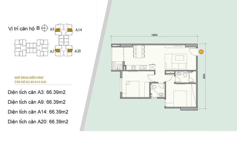 - Căn loại 3 PN: 85,8m2 - 105,2m2