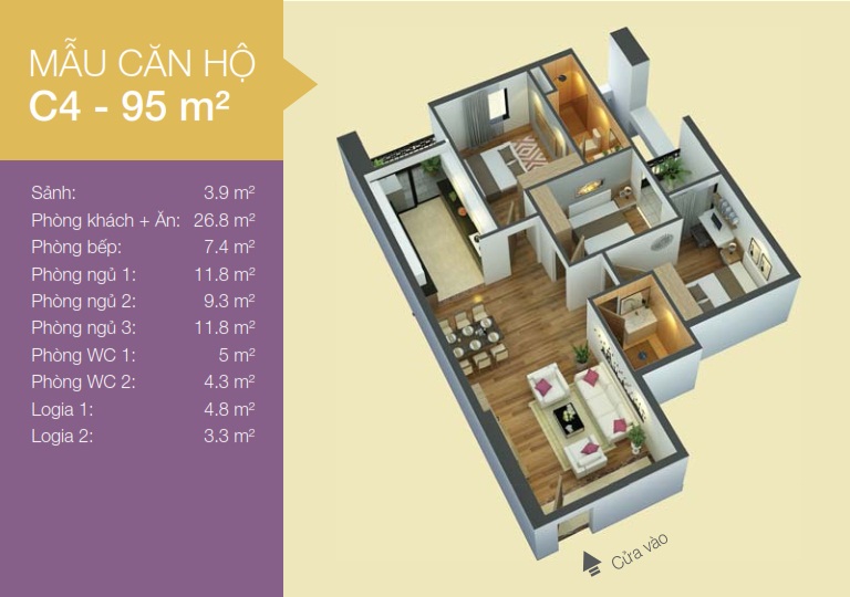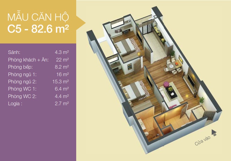 - Diện tích căn hộ: