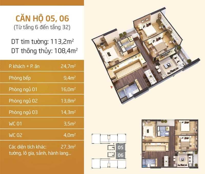 - Diện tích căn hộ Penthouse: là 210m2.