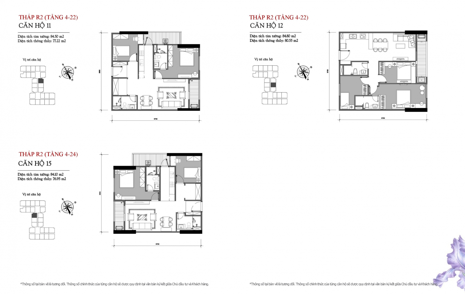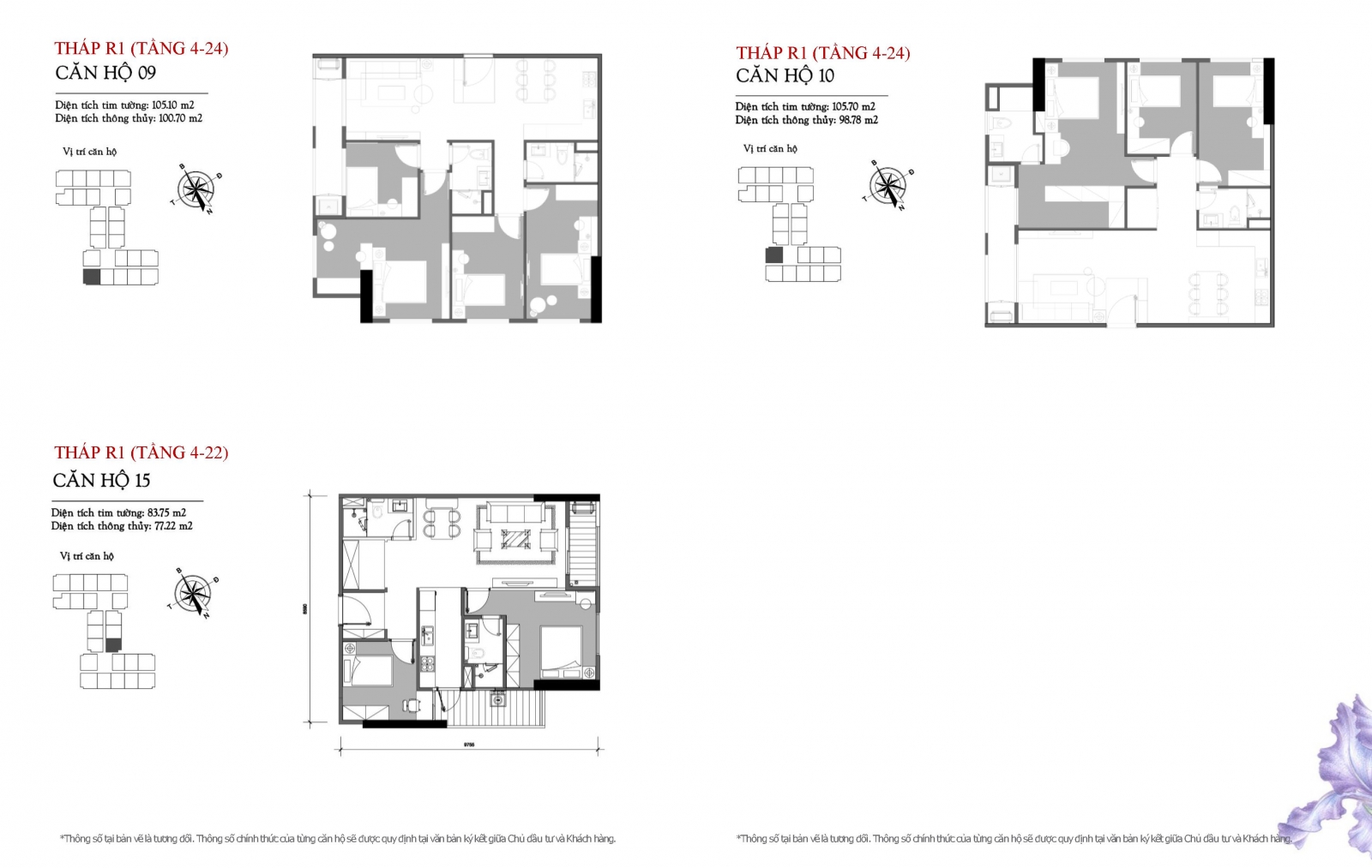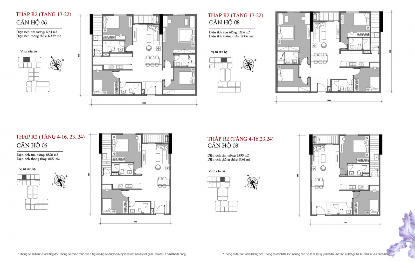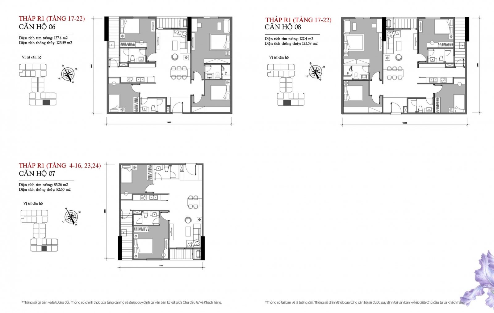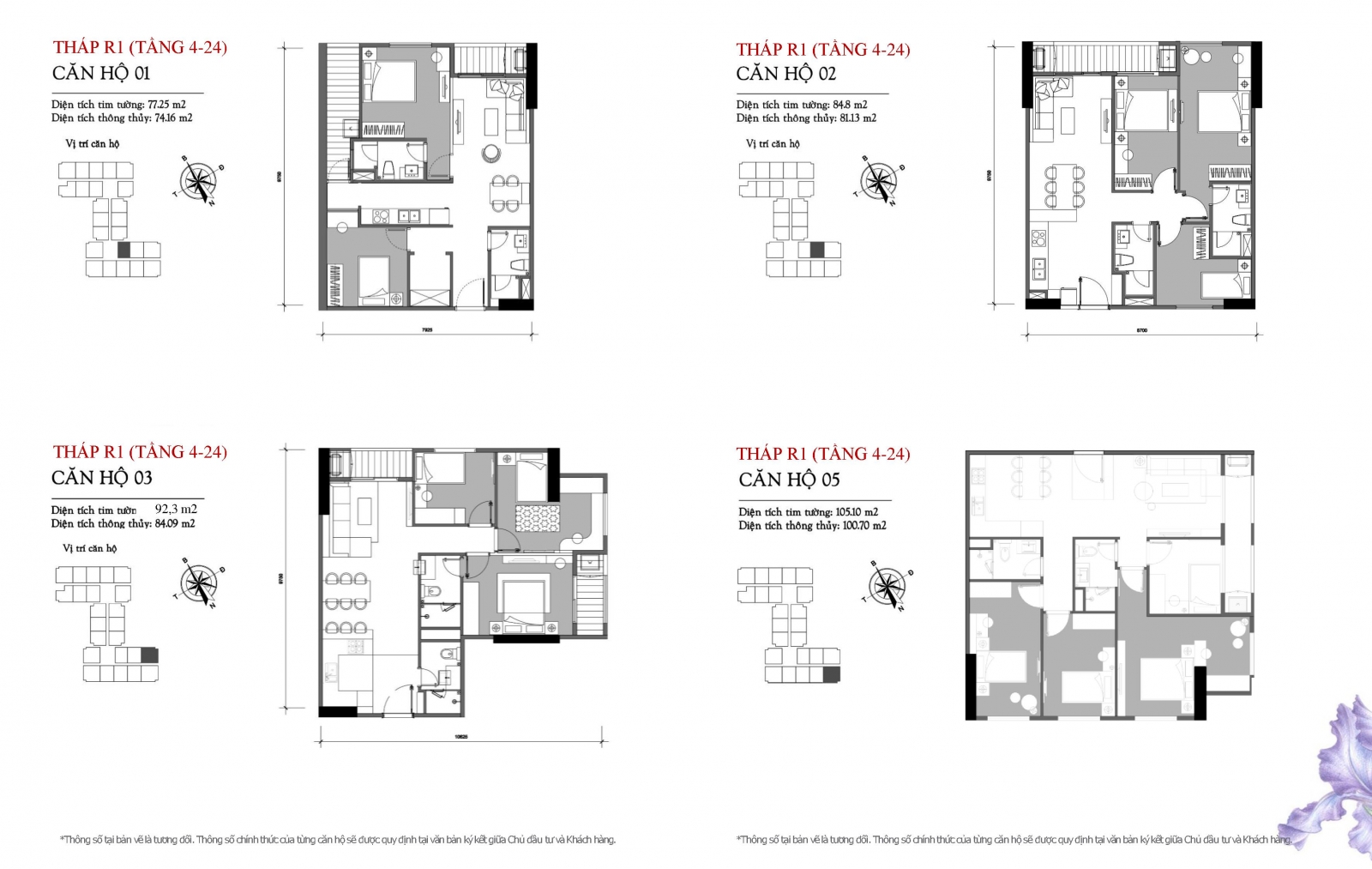 - Cơ cấu diện tích căn hộ: từ 74m2-123m2 có từ 2-4 phòng ngủ