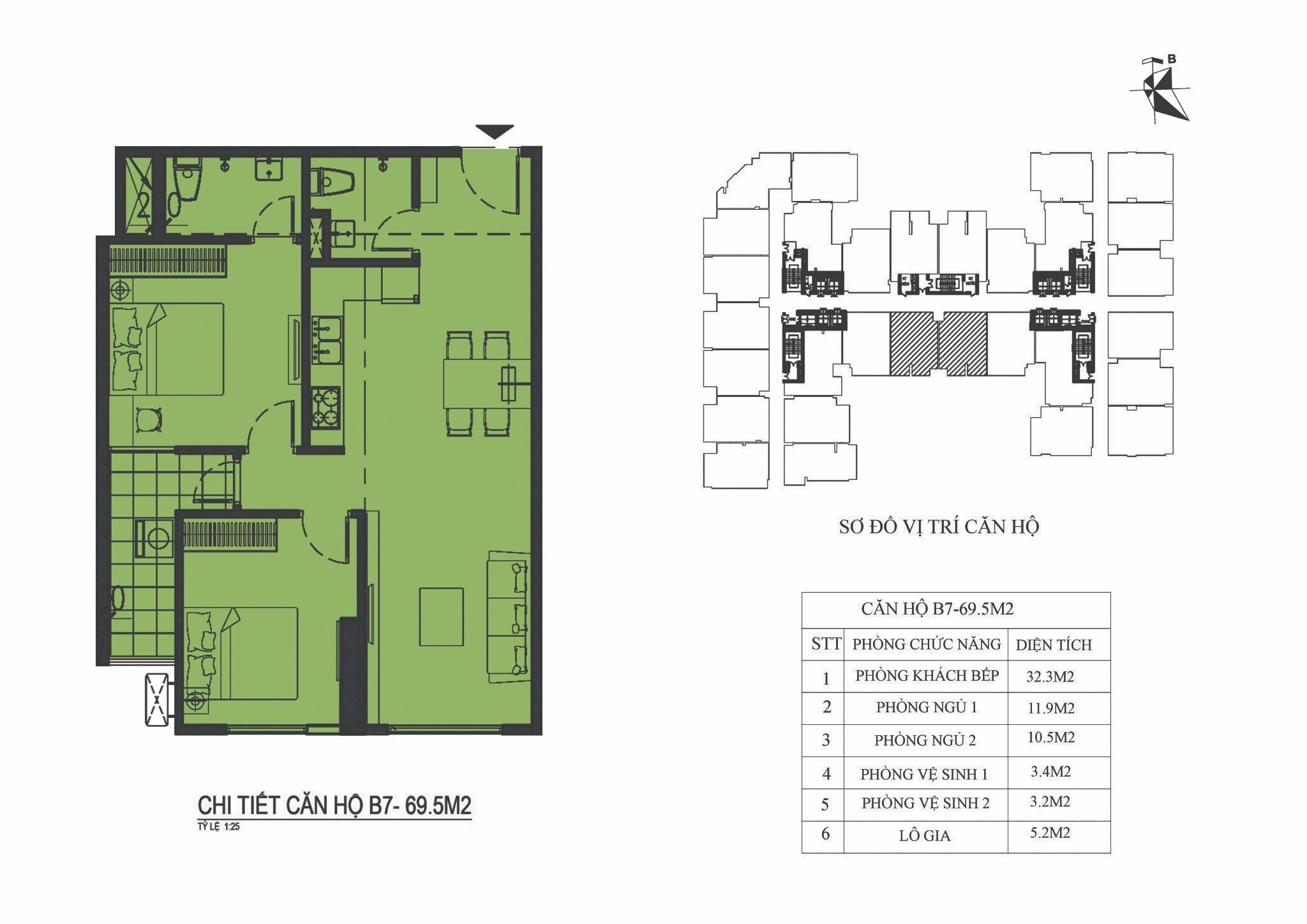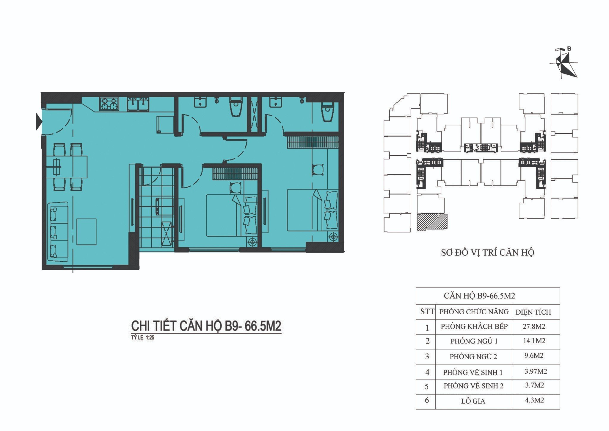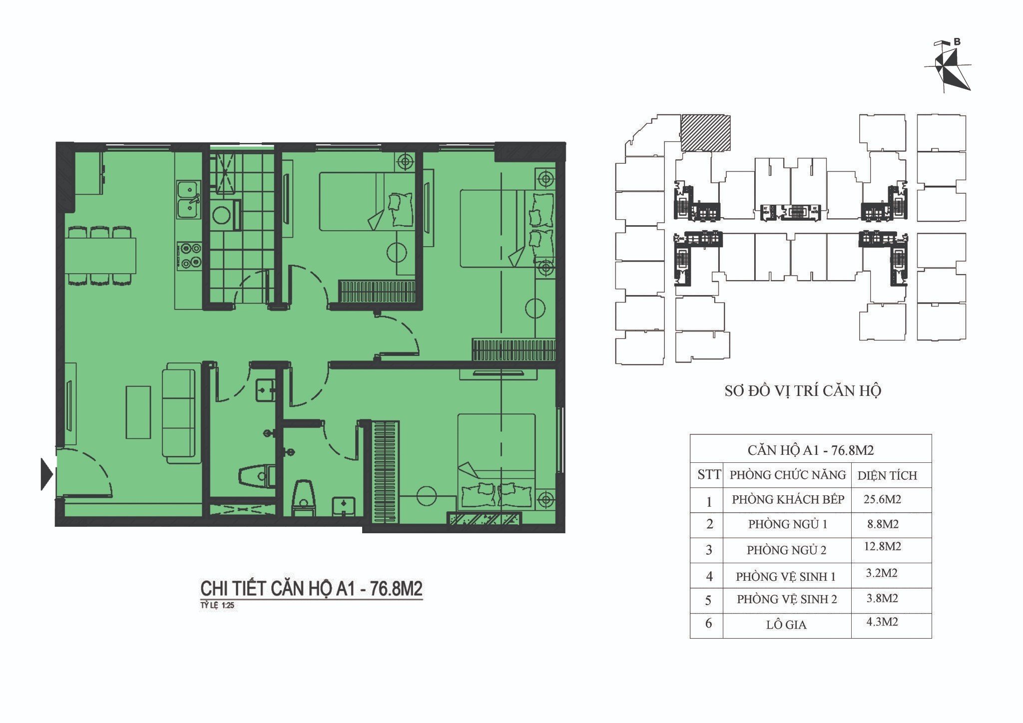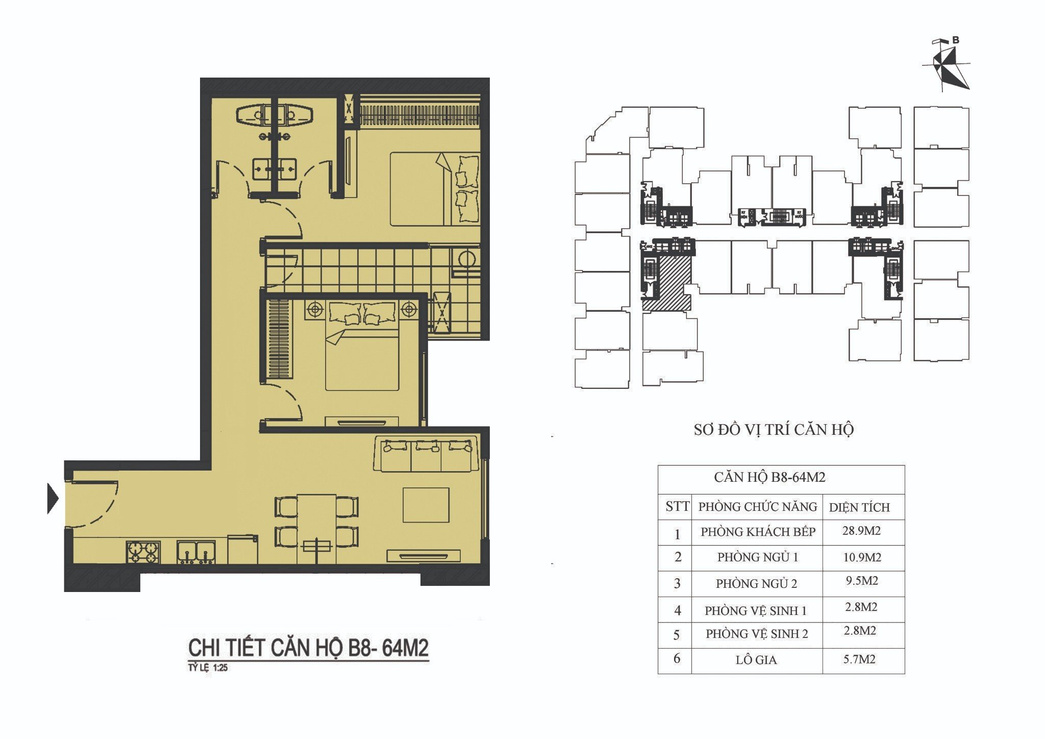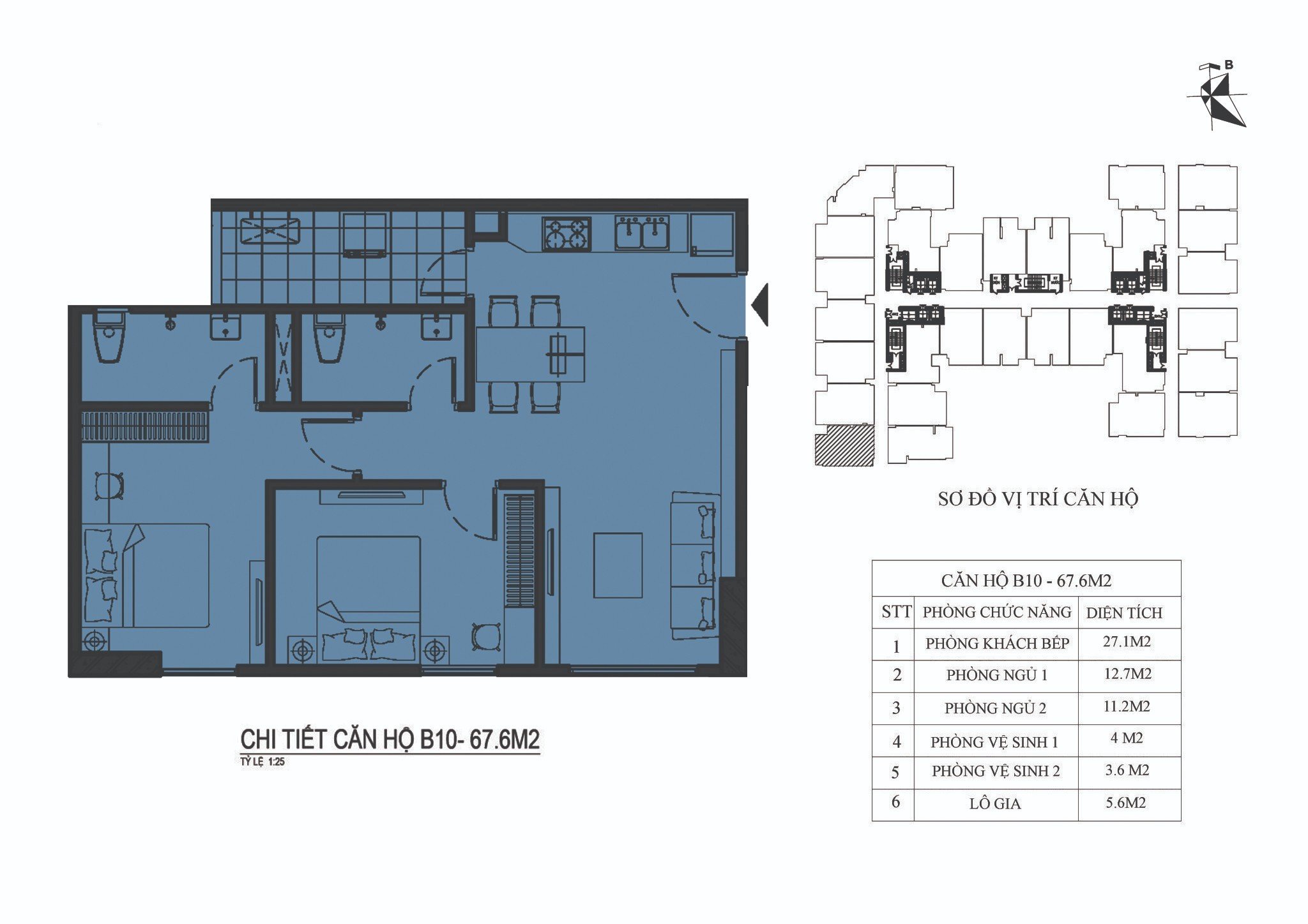 - Diện tích căn hộ: từ 64 - 76.6 m2