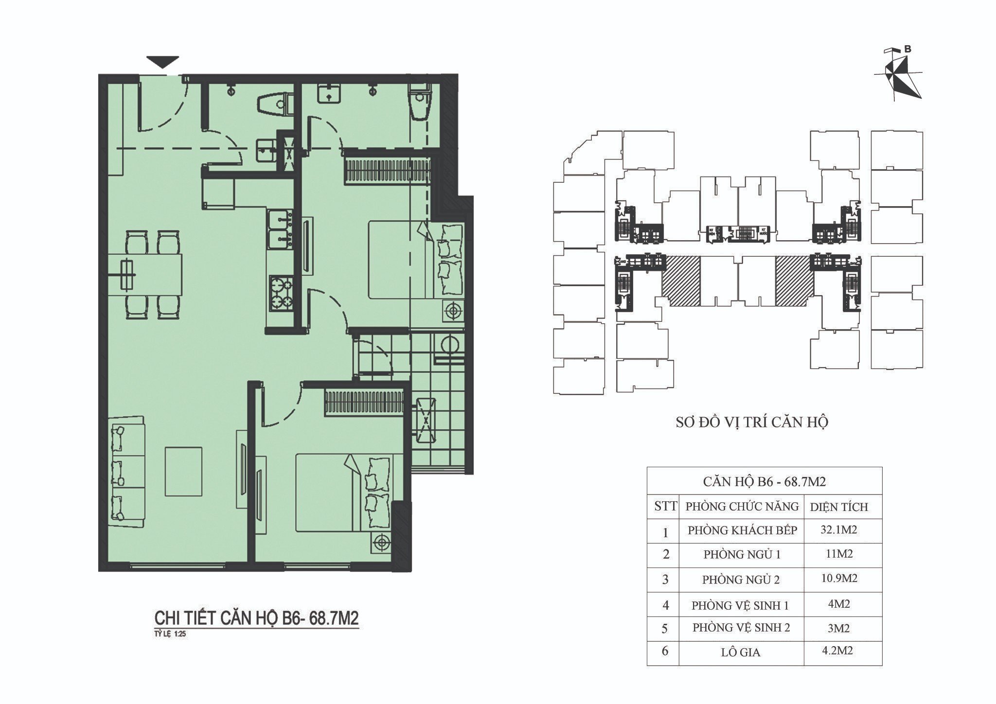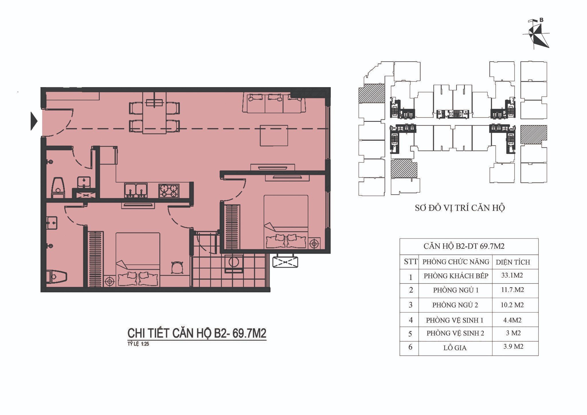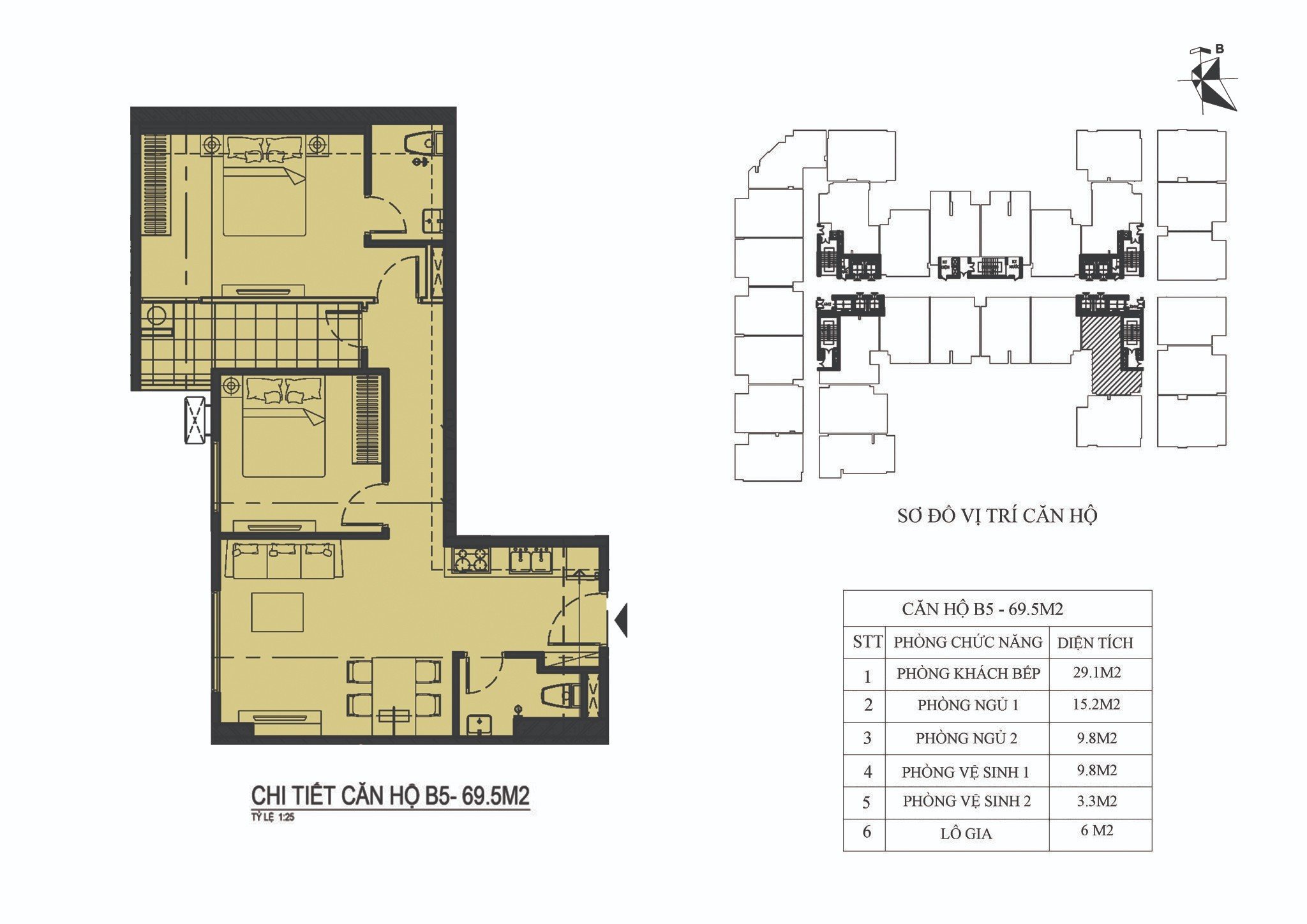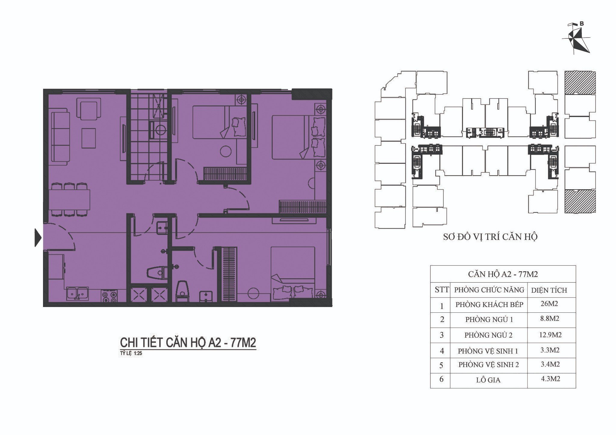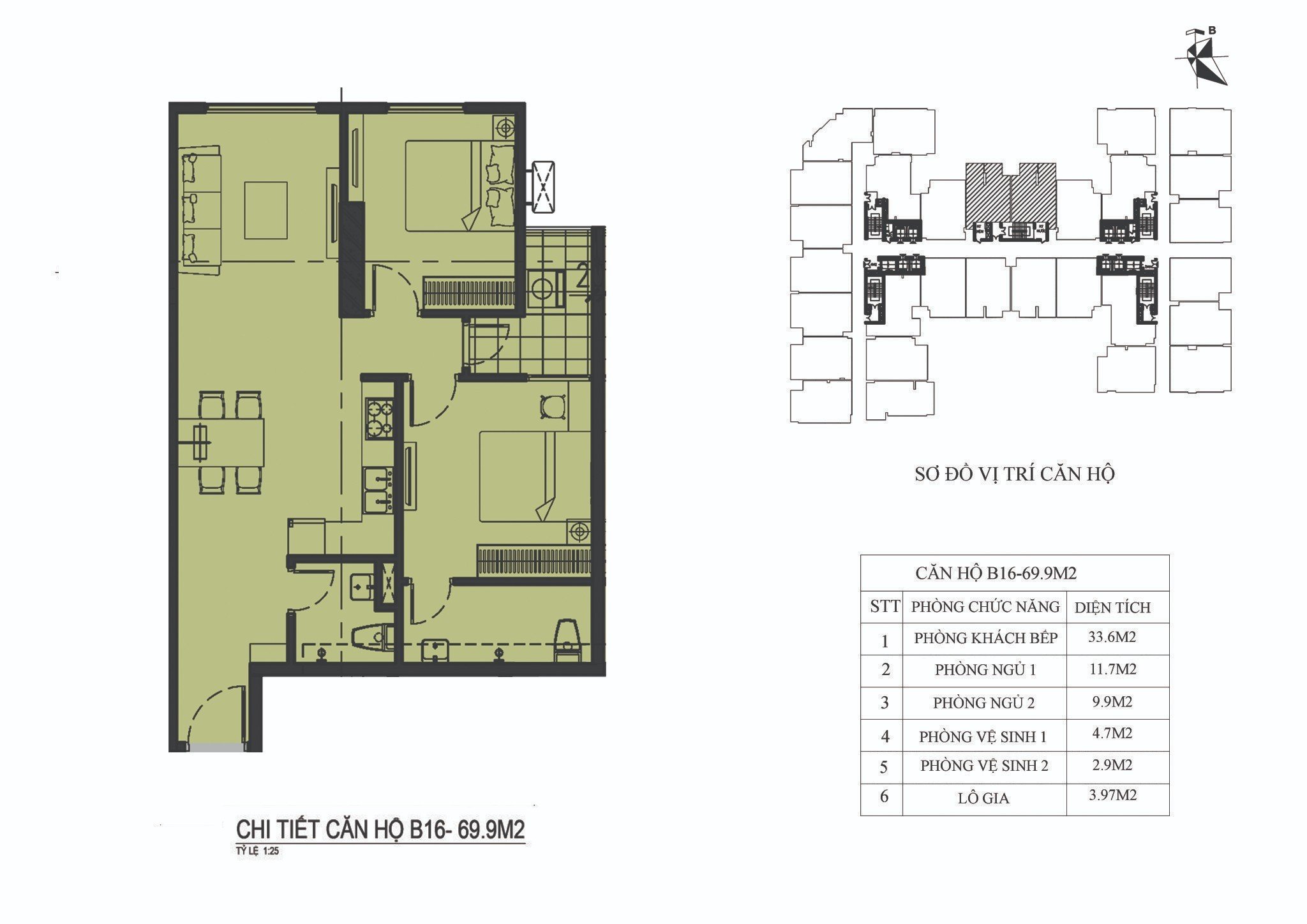 - Diện tích căn hộ: từ 64 - 76.6 m2