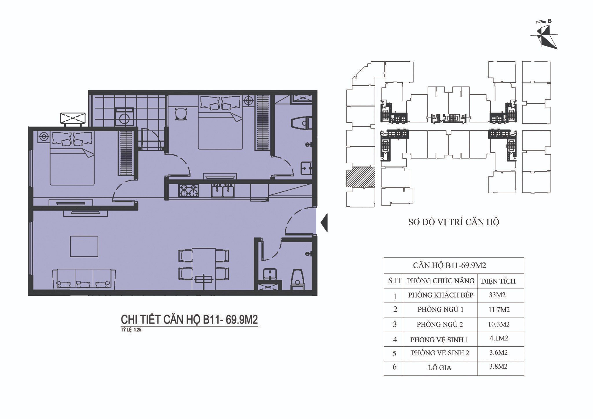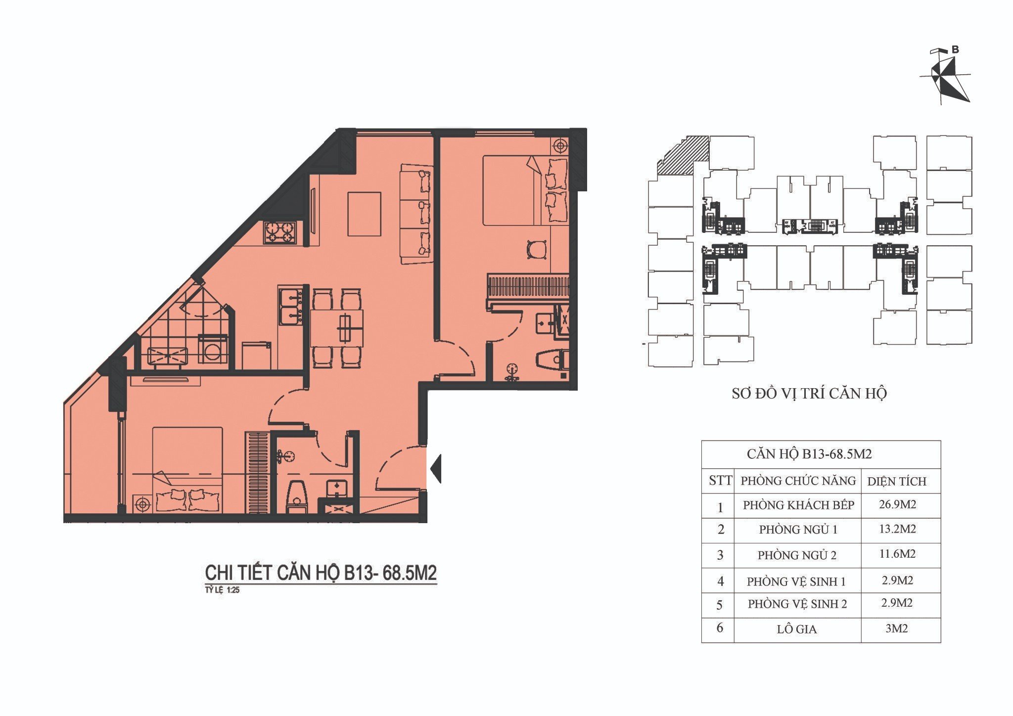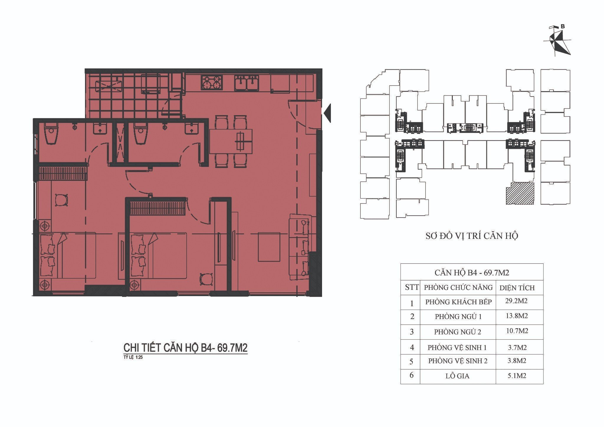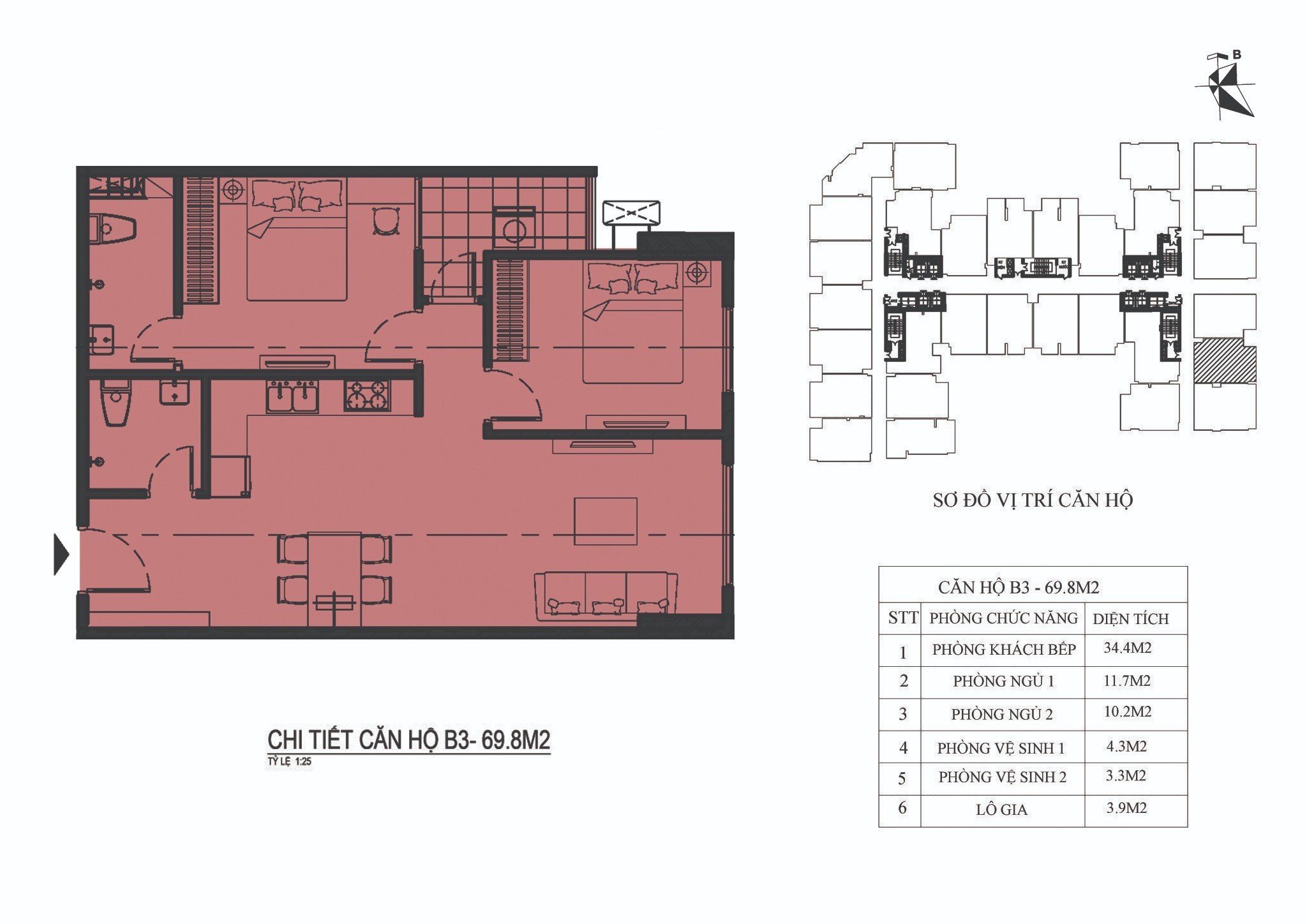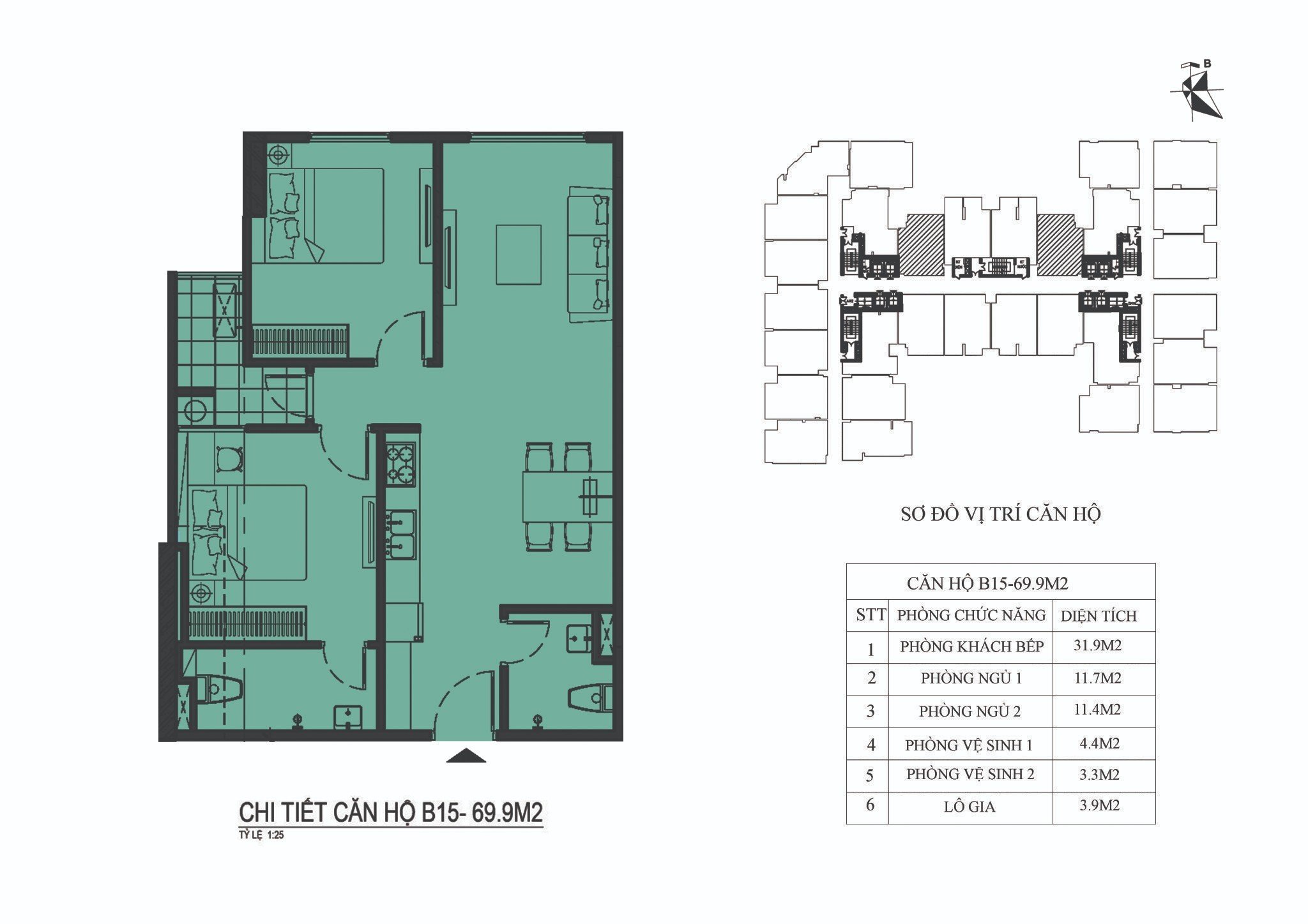 - Diện tích căn hộ: từ 64 - 76.6 m2