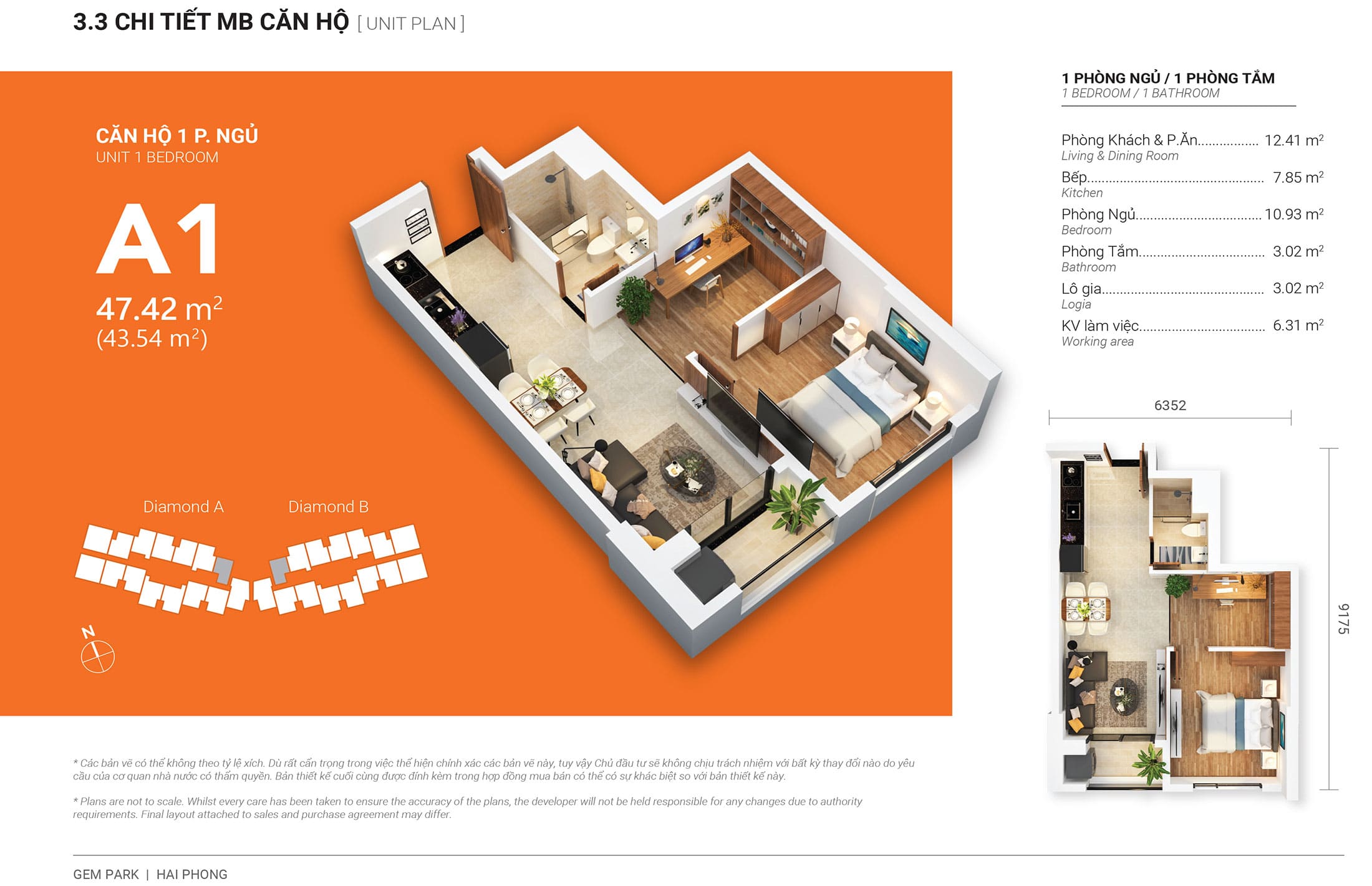 - Diamond Tower A: 484 căn (15 căn / sàn) (465 căn hộ cc + 19 căn Pen)