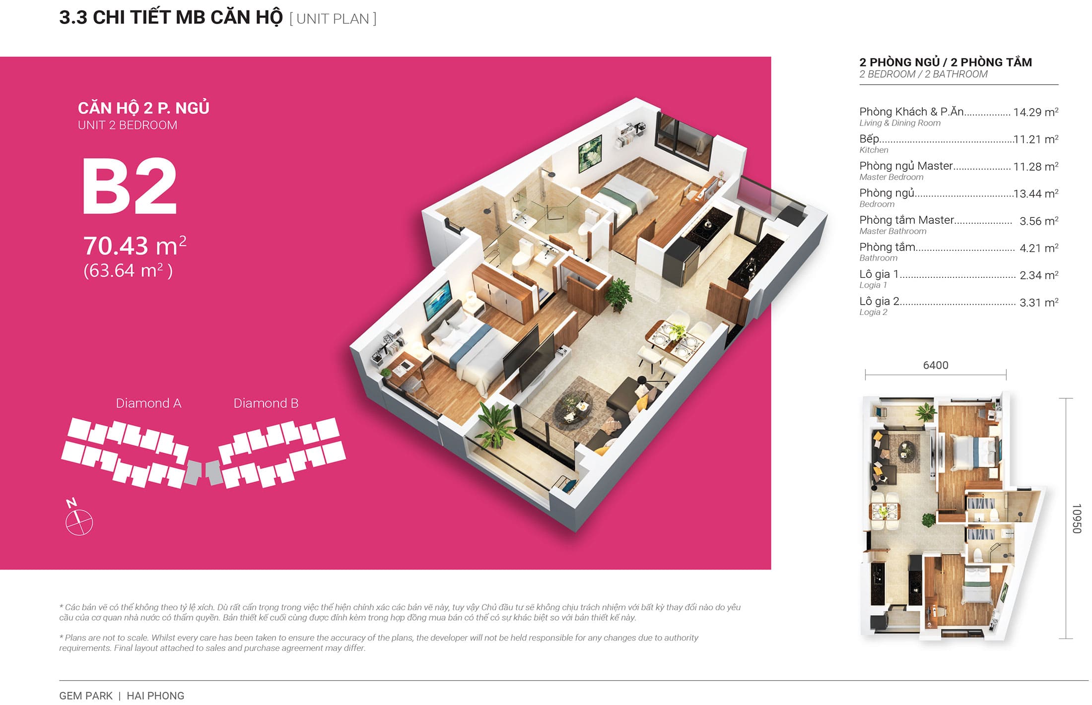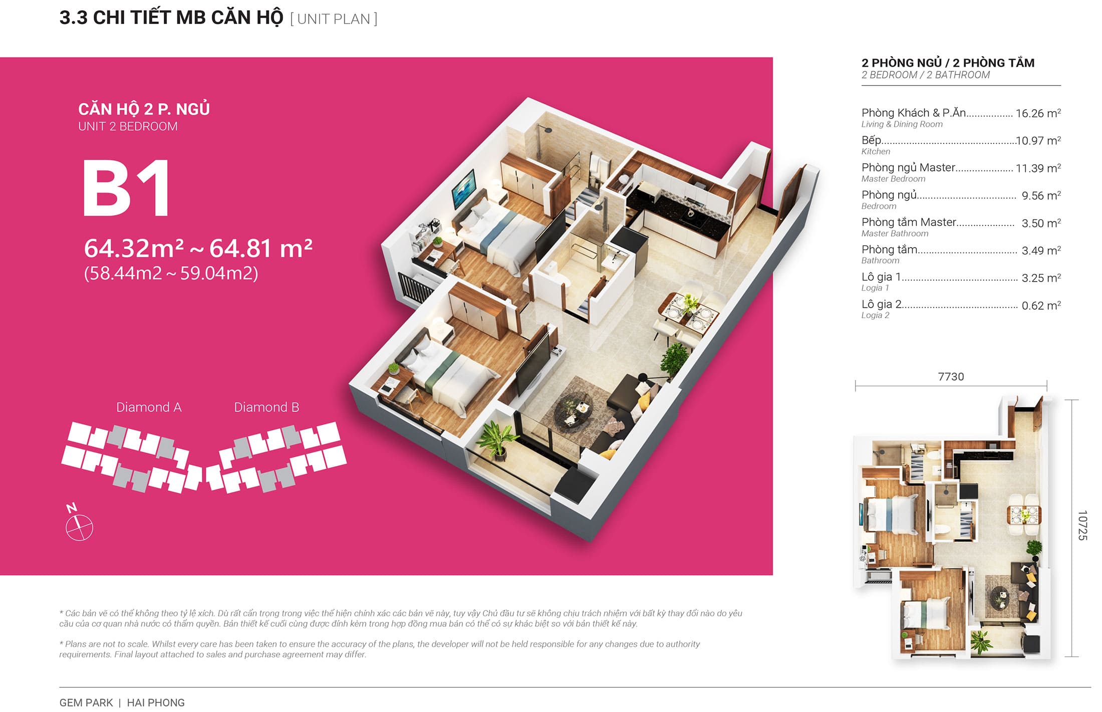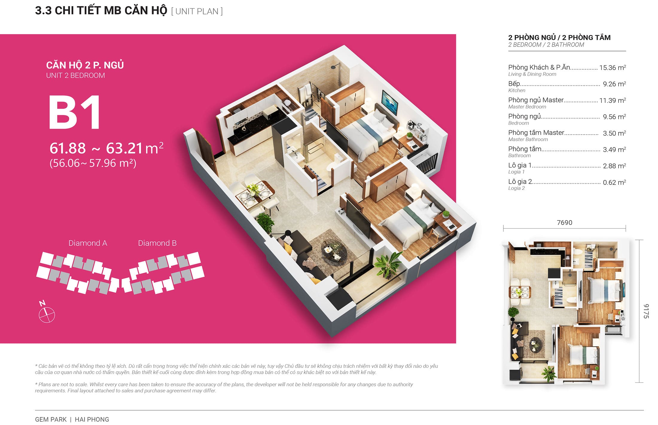 - Diamond Tower B: 483 căn (15 căn / sàn) (465 căn hộ cc + 18 căn Pen)