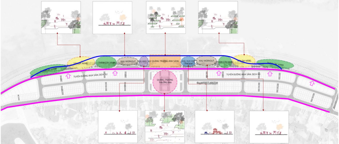 - Công viên, đường dạo bộ.