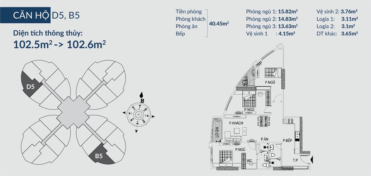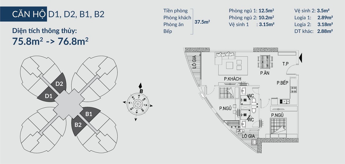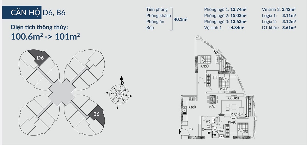 Các căn hộ tại The Queen có diện tích linh hoạt từ 76m2 – 102,5m2 được bố trí 2 – 3 phòng ngủ, phòng nào cũng có logia hoặc cửa sổ tiếp xúc ánh sáng giúp tối ưu công năng mà vẫn đảm bảo sự khoáng đạt cho không gian sống, phù hợp với nhu cầu của hầu hết các khách hàng.