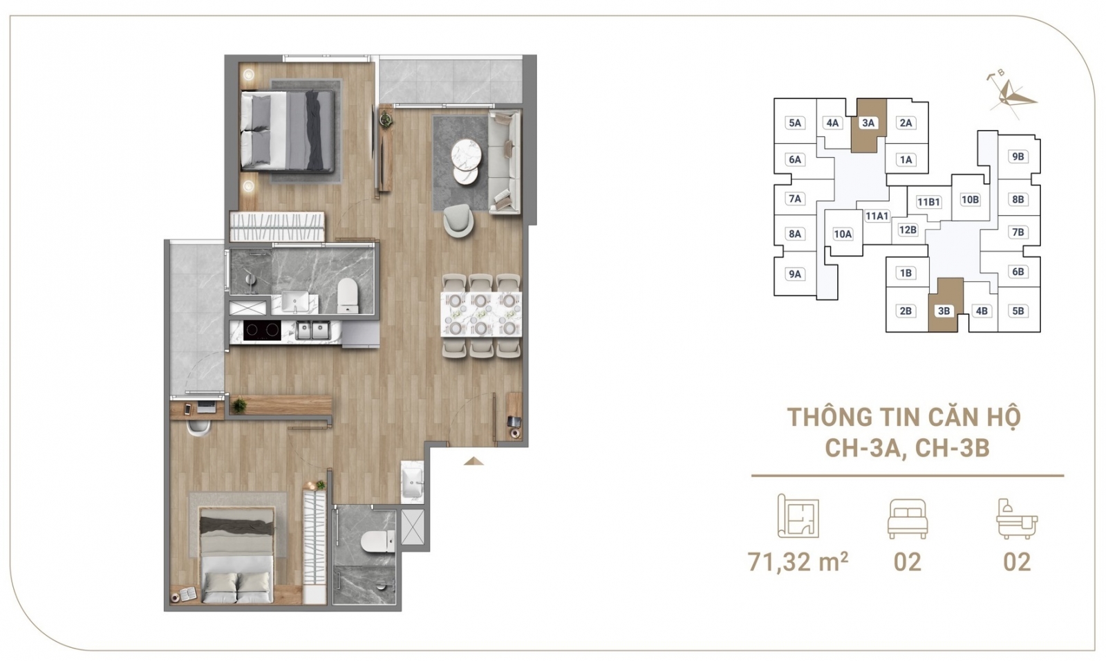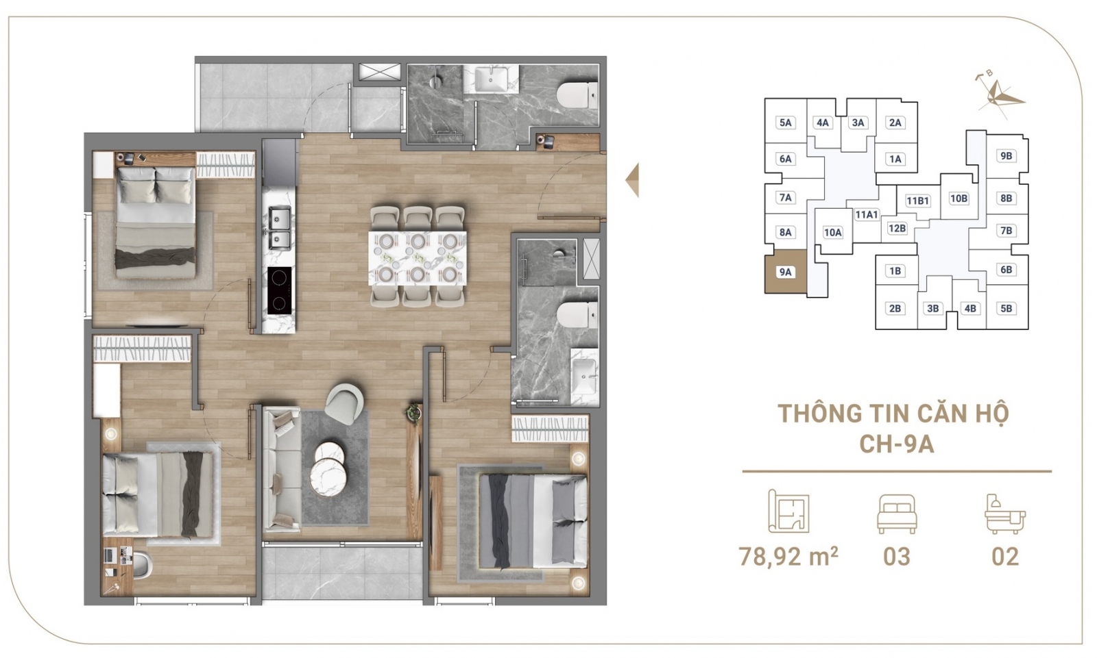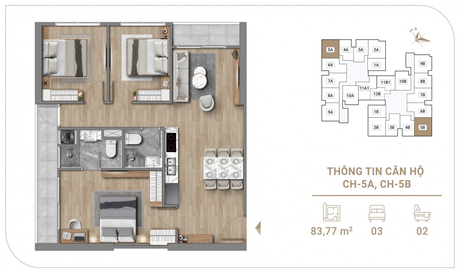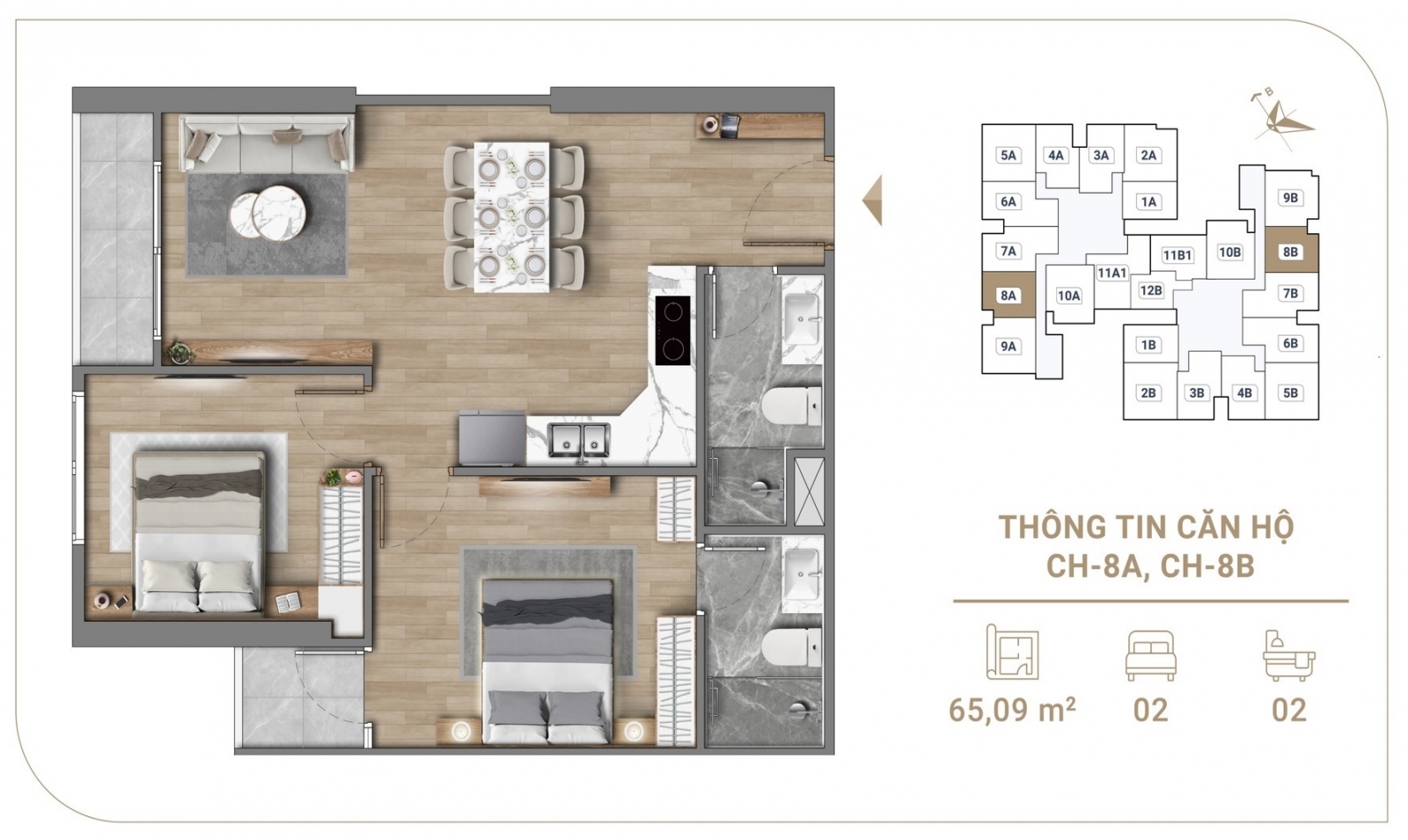 - Diện tích căn hộ: 56-65-67-76-77-79-80-98 m2