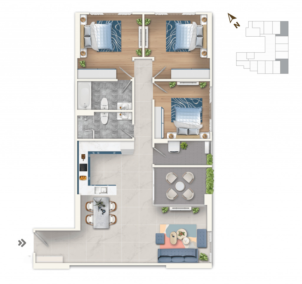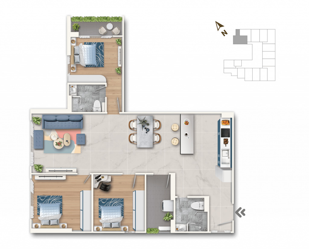 - Căn 03 phòng ngủ: Gia đình có từ 5 thành viên trở lên