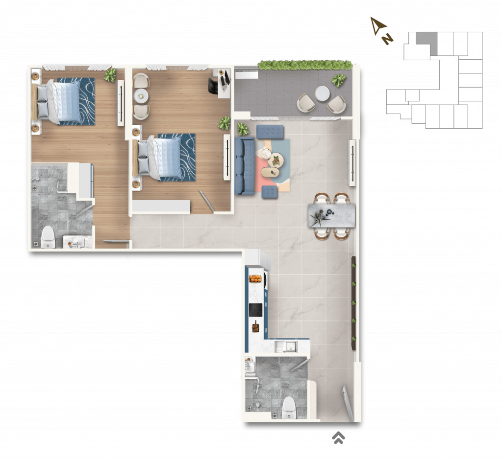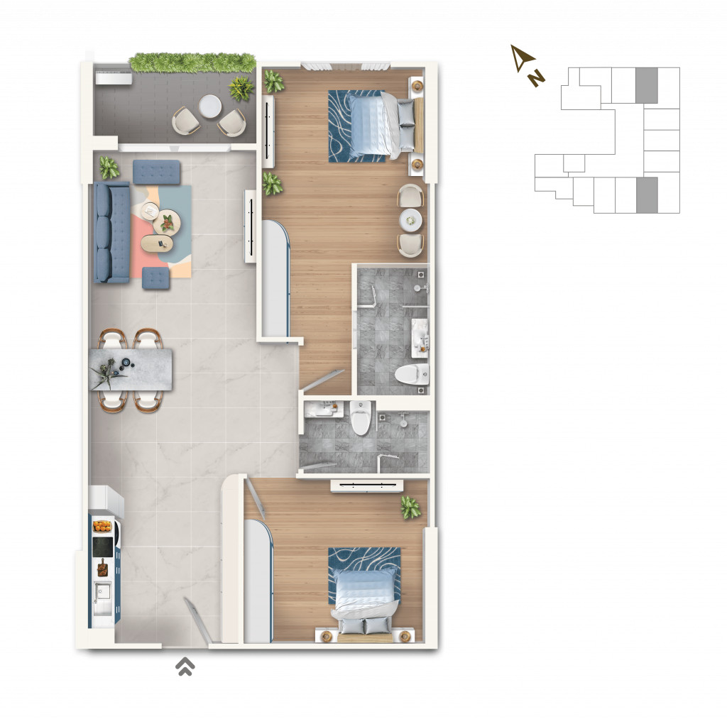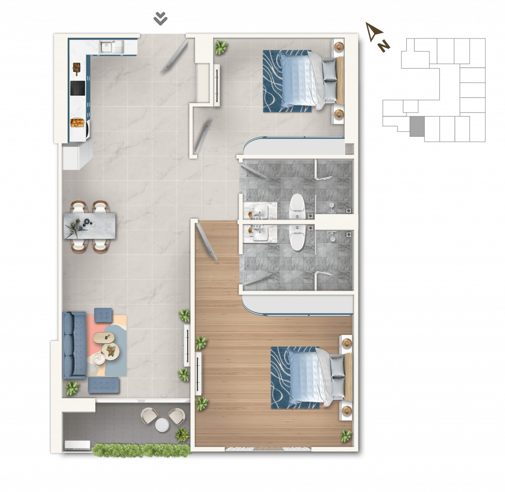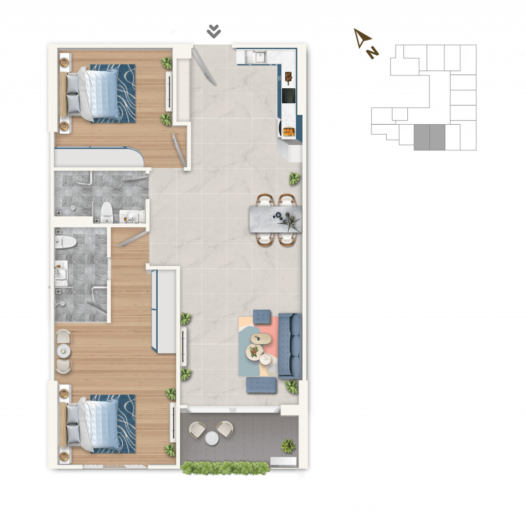 - Căn 02 phòng ngủ: Gia đình có từ 3-4 thành viên