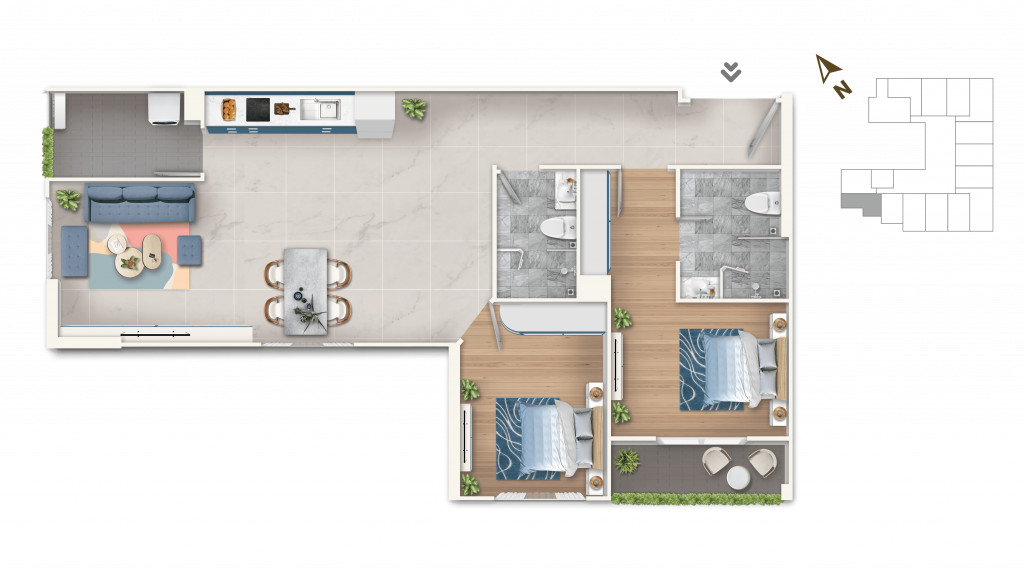 - Căn Dual keys: Dạng căn hộ kép, căn hộ chìa khóa đôi với 2 lối đi chuyên biệt.