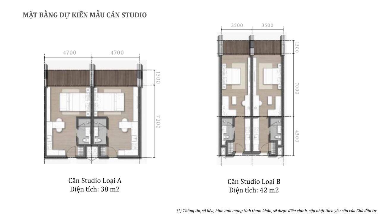 - Căn hộ Studio: 38-42 m2