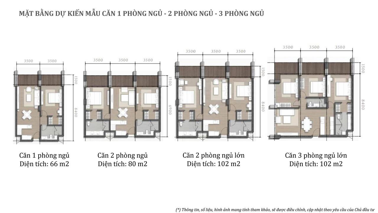 - Loại hình căn hộ: Studio, 1-2-3 Phòng ngủ, Duplex, Penthouse